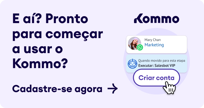 Um exemplo de Marketing Visual é o uso de imagens, carrosseis e vídeos atrativos na comunicação via WhatsApp, uma ferramenta poderosíssima no marketing conversacional. A Kommo permite essa técnica com seu Chatbot Para WhatsApp, que pode ser usado para melhorar suas estratégias de marketing visual.
