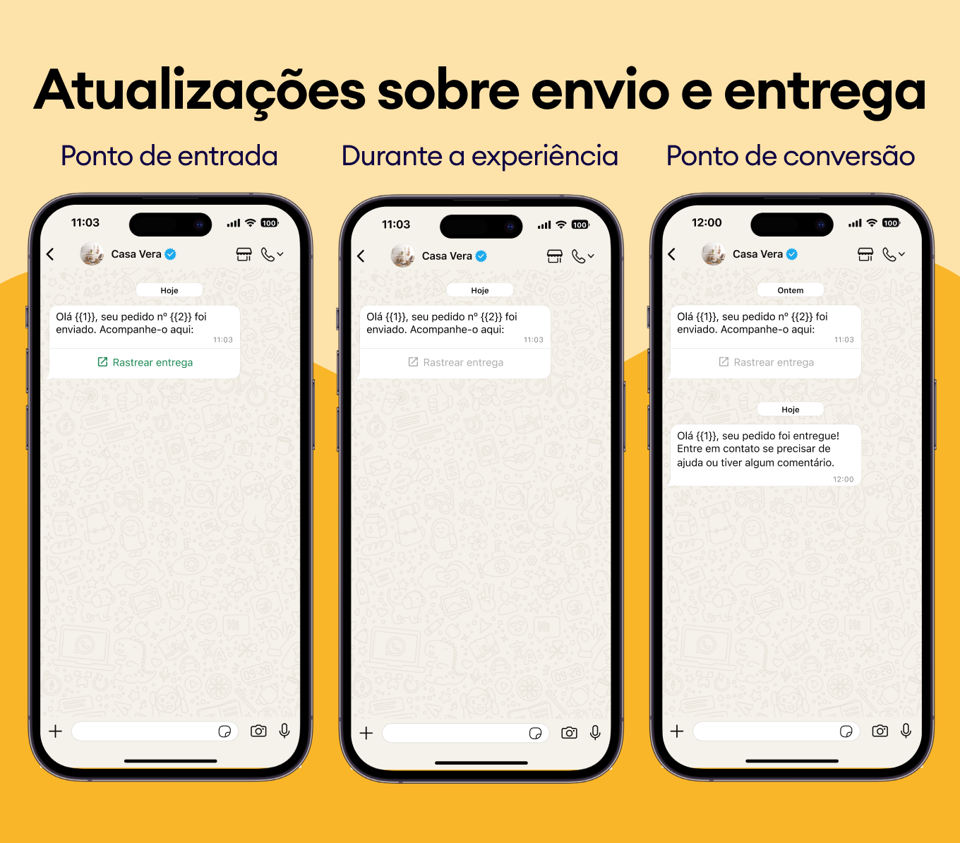 Os modelos do WhatsApp são formatos de mensagem aprovados pela Meta que permitem enviar atualizações automatizadas e profissionais, mesmo quando o cliente não lhe enviou mensagens nas últimas 24 horas.