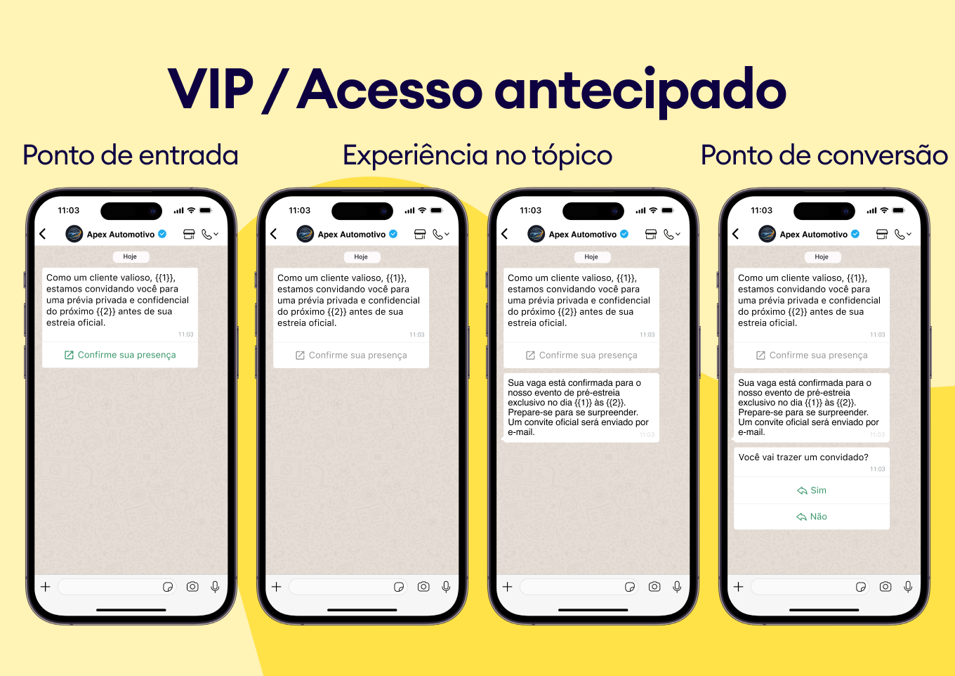 Utilize modelos do WhatsApp em suas operações atuais para garantir uma experiência fluida desde a reserva até o acompanhamento.
