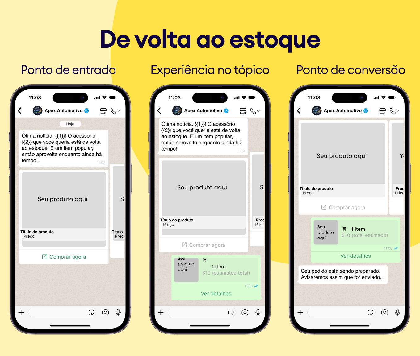 Informe os clientes sobre o status do pedido instantaneamente por meio de modelos do WhatsApp.