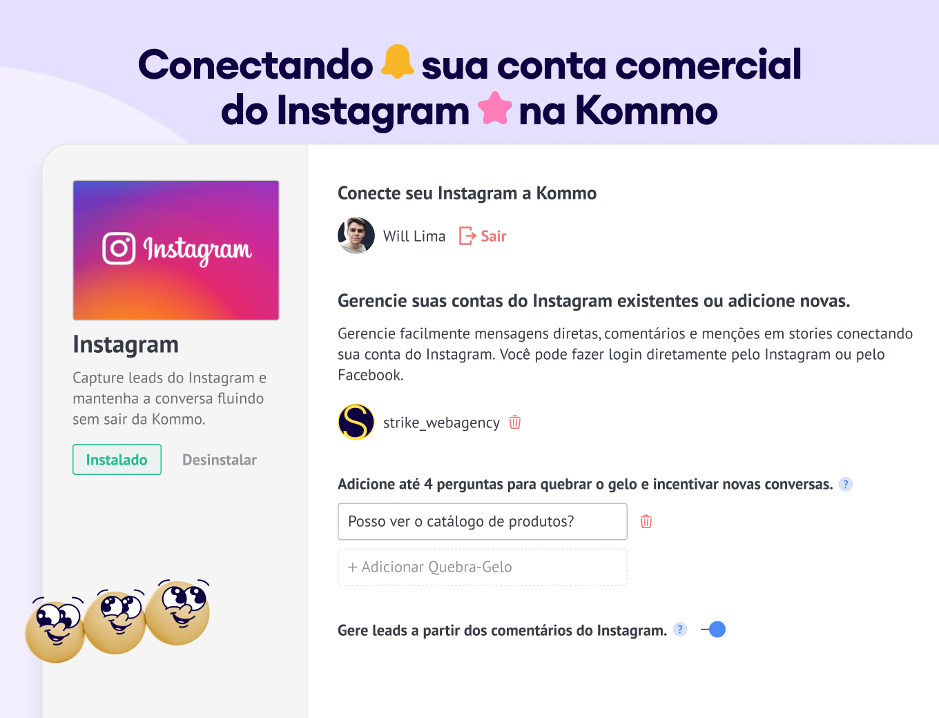Passo 1: Conecte sua conta do Instagram a Kommo