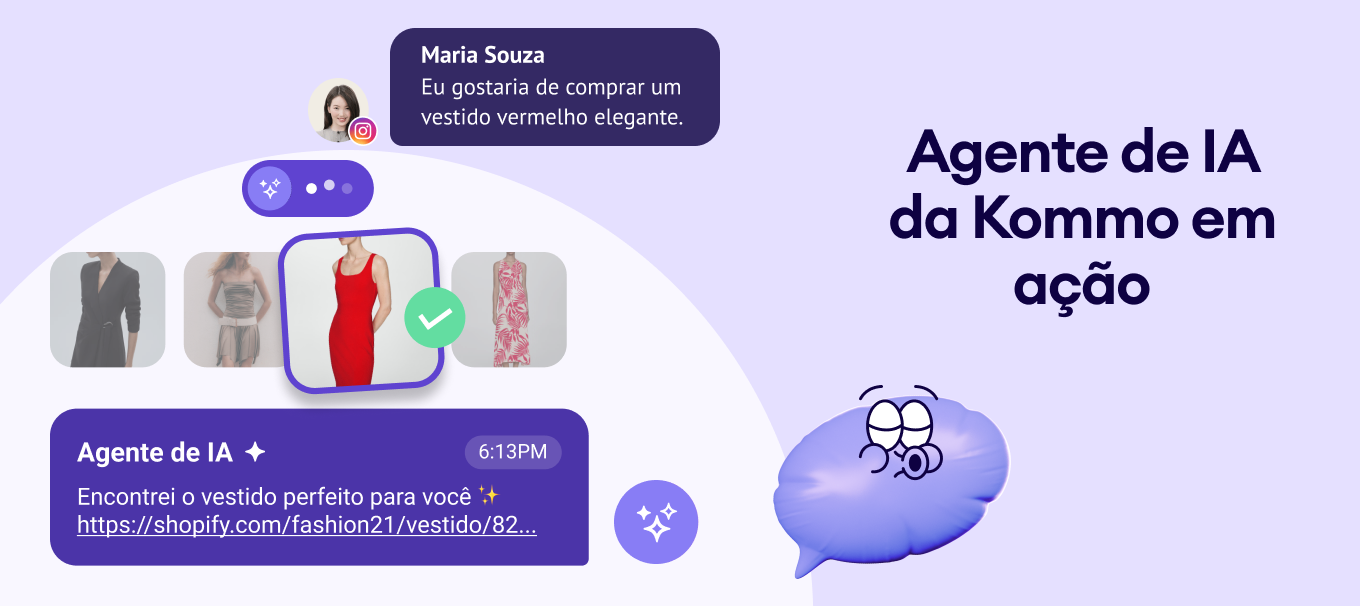 O agente de IA da Kommo consegue lidar com perguntas repetitivas, orientar os usuários nas opções de produtos, coletar informações importantes ou transferir a conversa para um agente humano quando necessário. Com o tempo, ele aprende com interações reais e adapta suas respostas para se adequar ao tom da sua marca e ao seu processo de vendas.