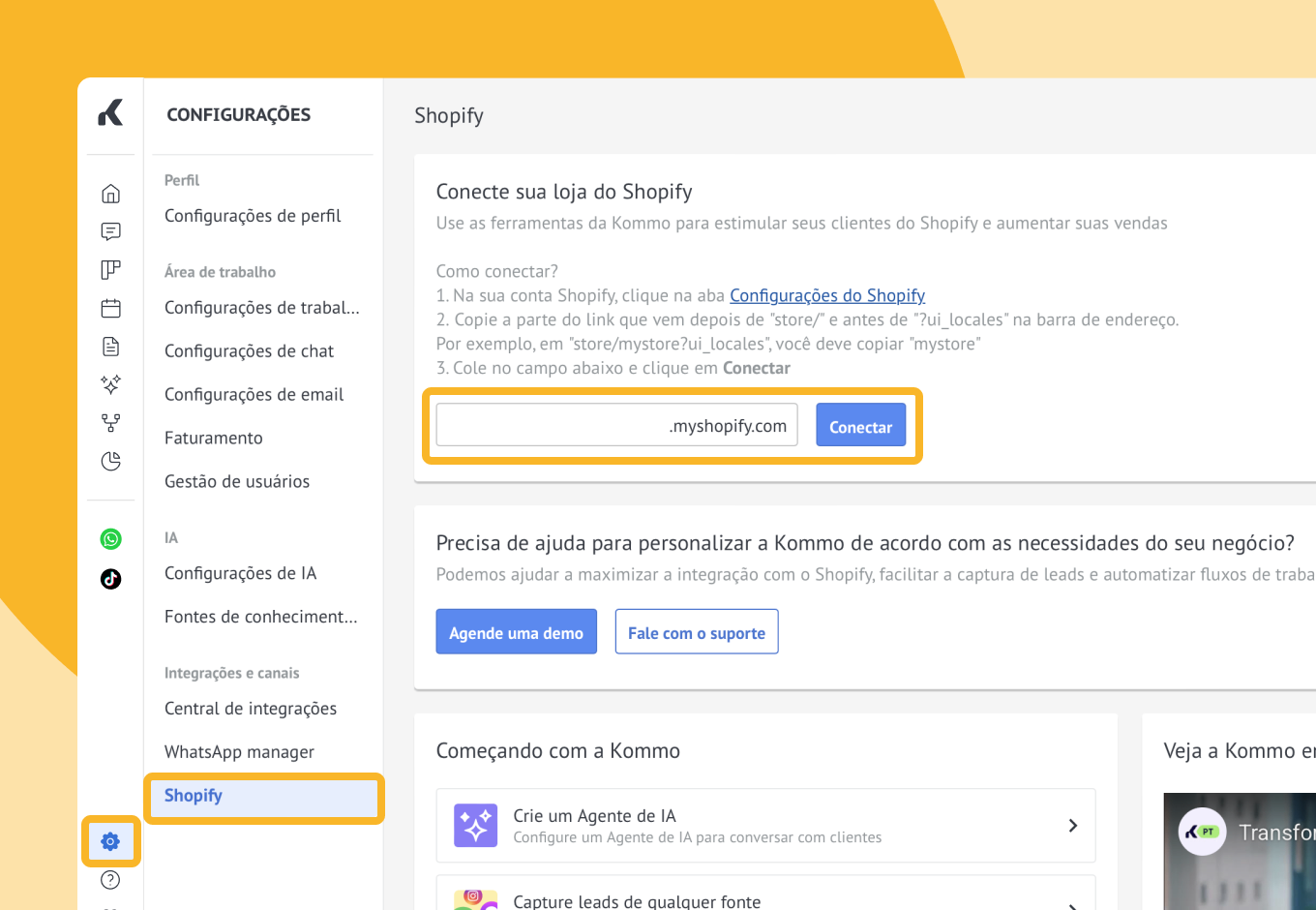 Há dois caminhos para conectar sua loja Shopify ao Kommo CRM: