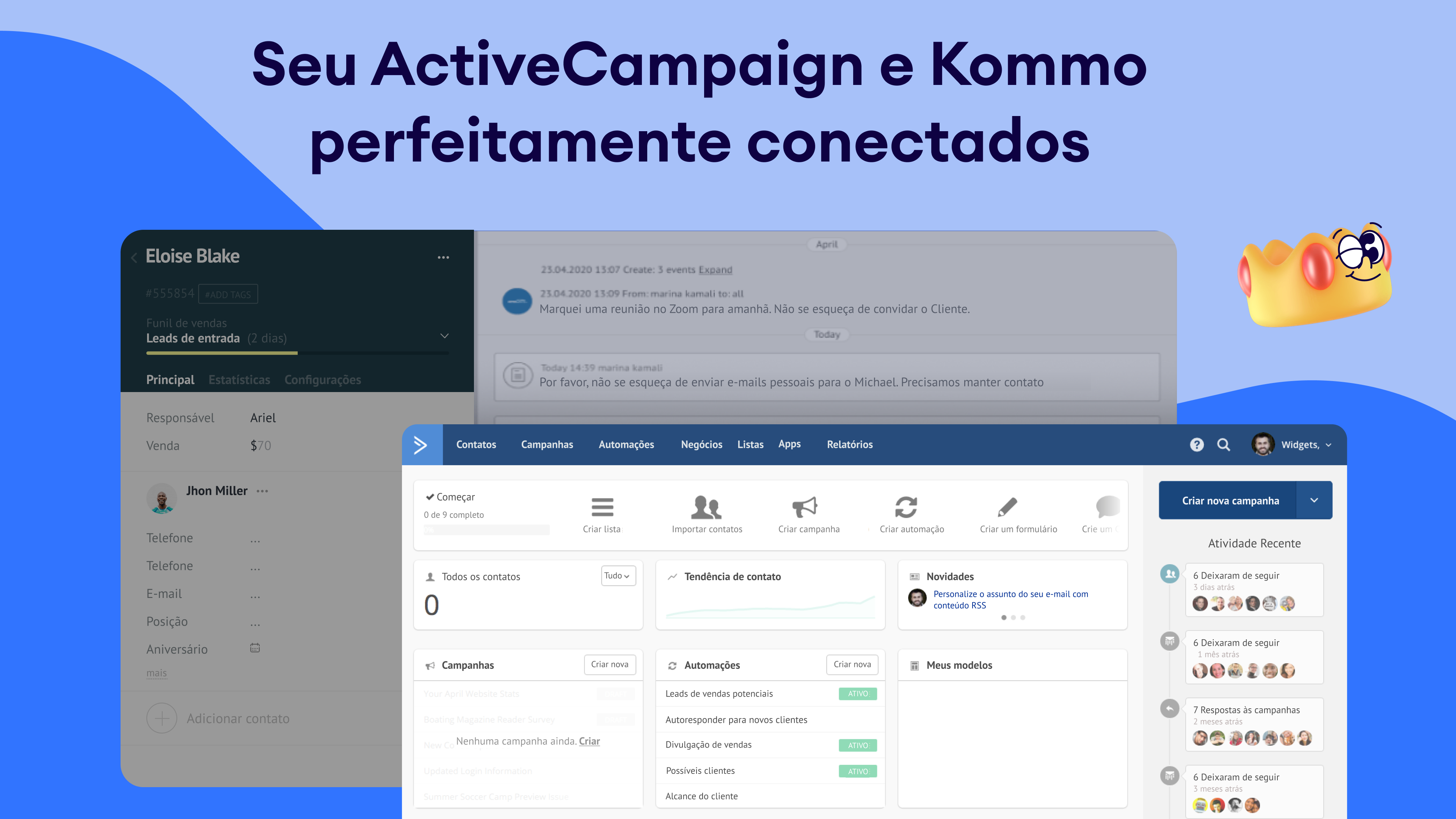 Sincronização de contatos: Mantenha as informações do seu lead e contato atualizados em ambas as plataformas, garantindo consistência.