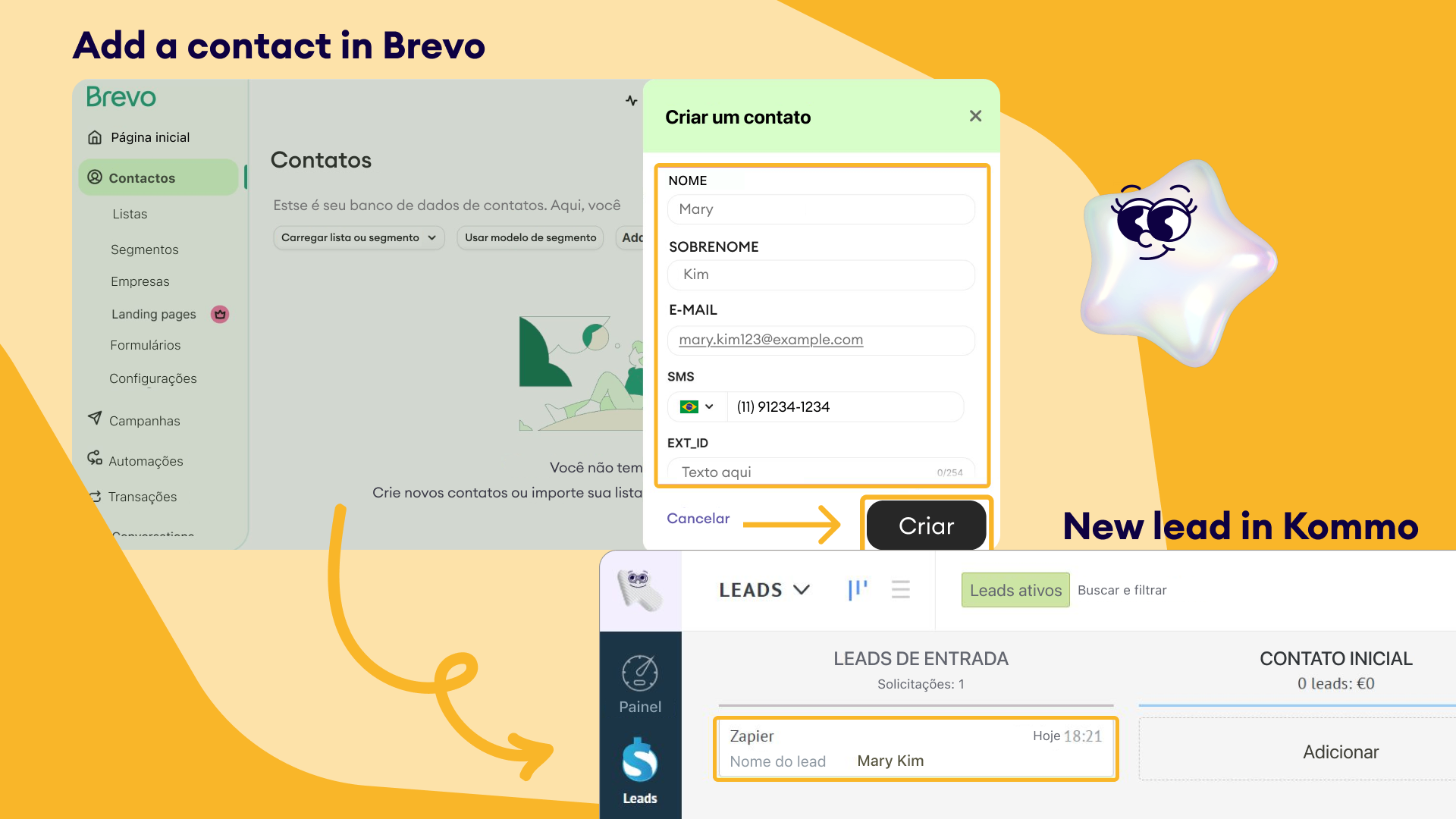 A integração do Brevo com o Zapier oferece aos usuários da Kommo uma maneira poderosa de automatizar acompanhamentos e comunicações de marketing. Seja um novo lead, uma atualização do estágio do lead ou o envio de um formulário, o Brevo pode lançar instantaneamente campanhas personalizadas que aumentam o engajamento e geram resultados.