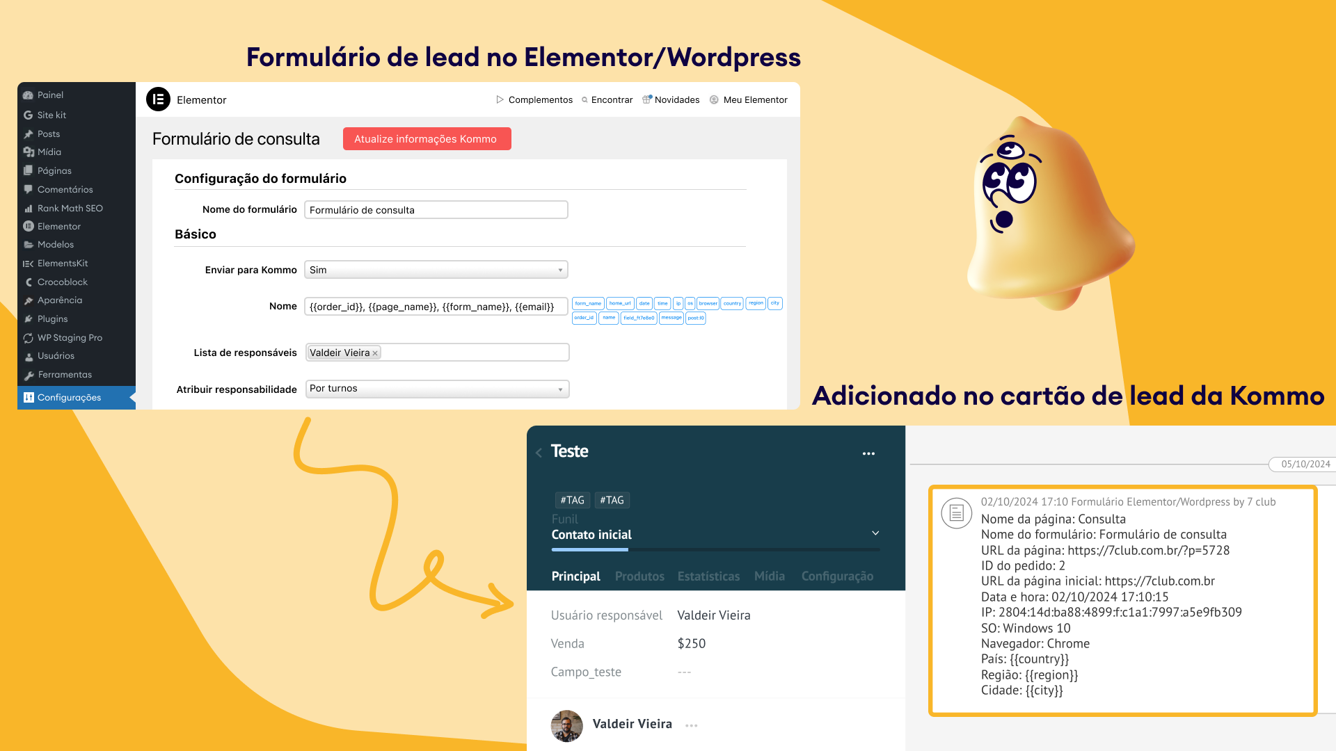 Com a integração Elementor/WordPress na Kommo, você pode: