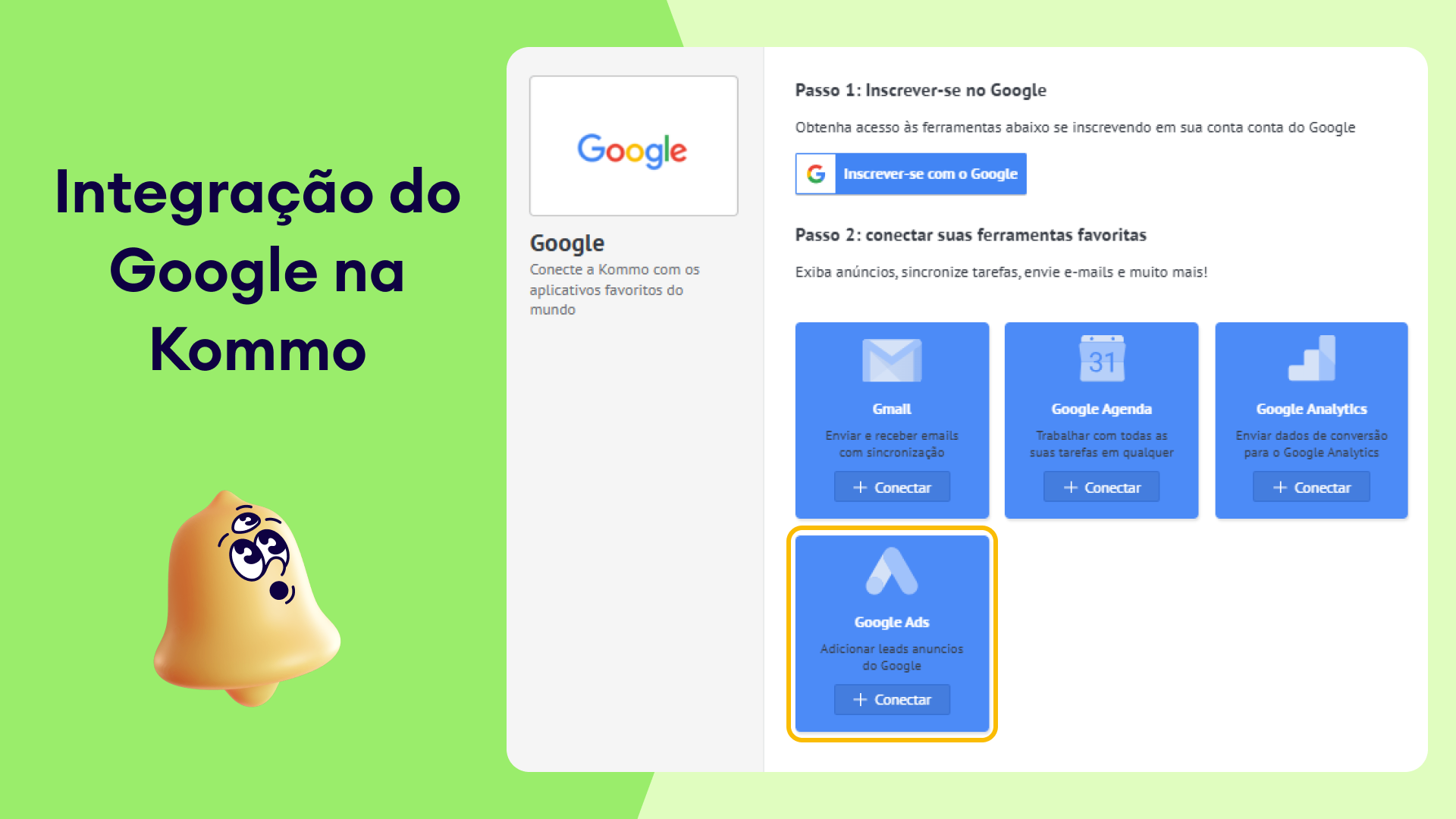 Para conectar o Google Ads a Kommo, verifique se você tem uma conta do Google Ads com permissão para usar o Customer Match e siga estas etapas: