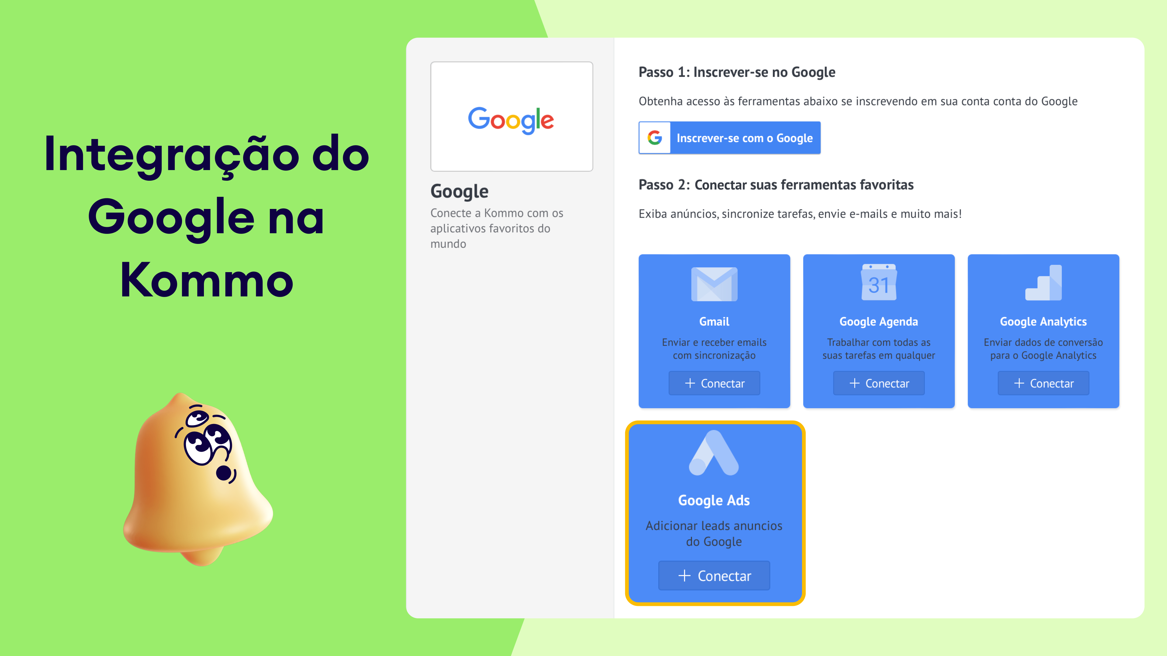 - Autentique sua conta do Google no Kommo.