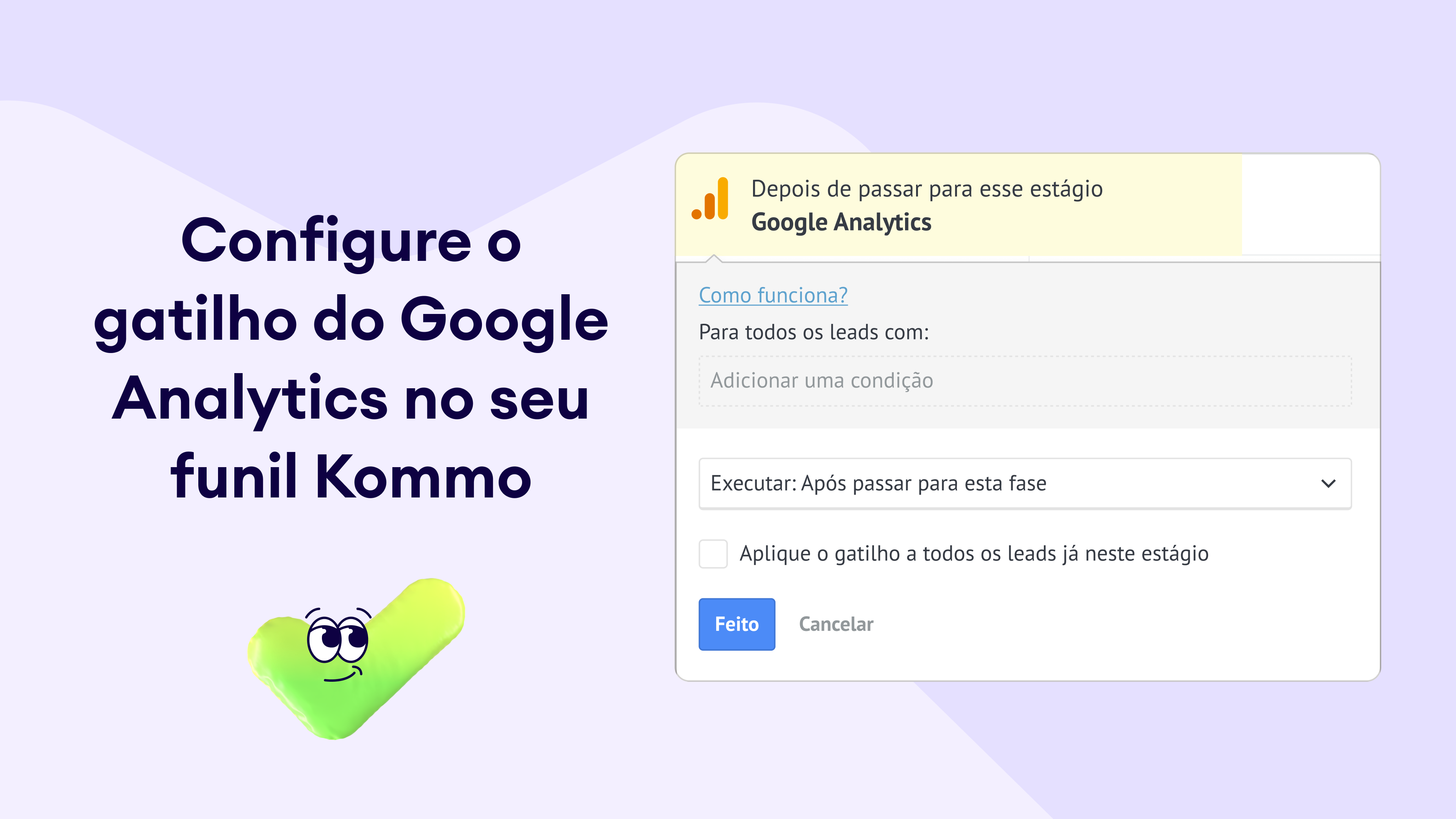 Pronto! Sua conexão está ativa ⭐ À medida que os leads avançam no funil, seus dados serão enviados ao Google Analytics, permitindo que você acompanhe a jornada deles.