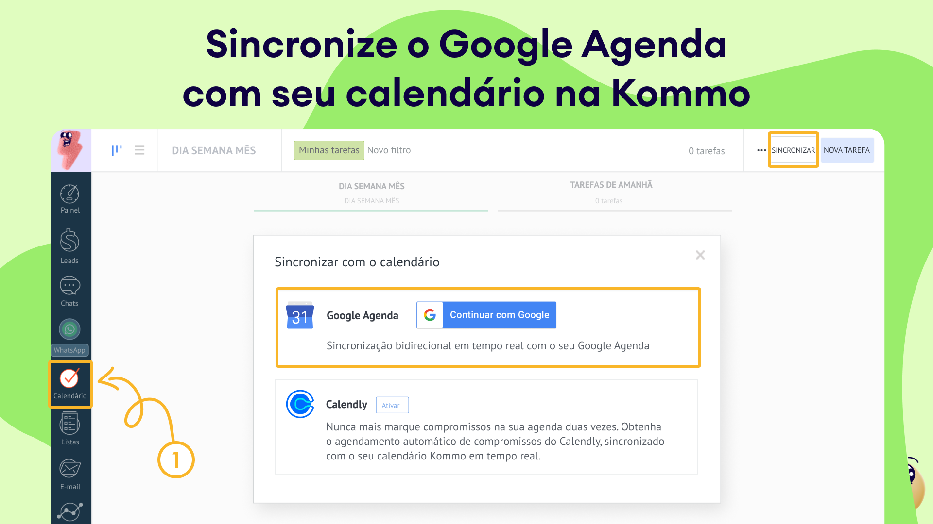 Para conectar o Google Agenda ao Kommo: