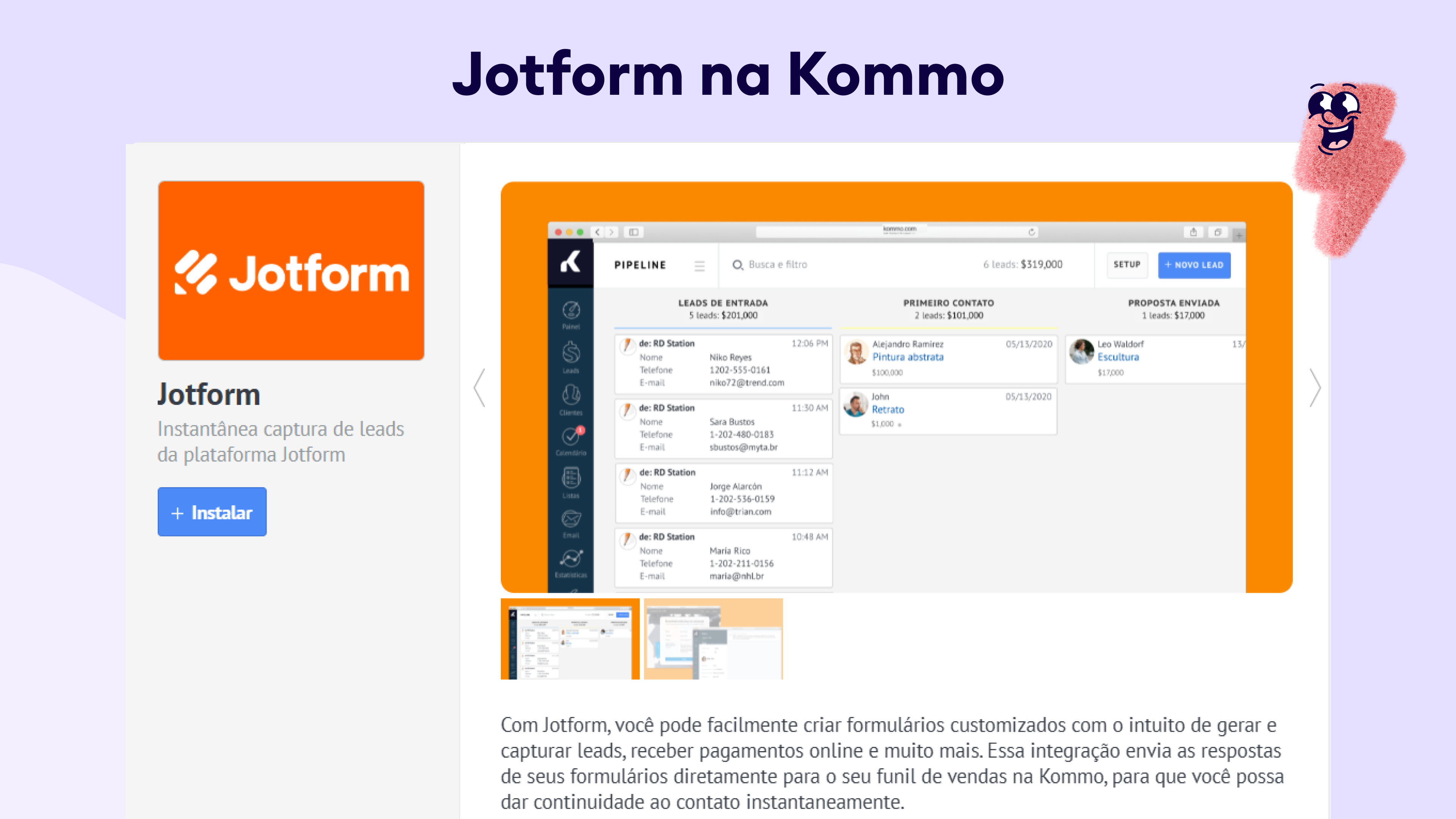 Essa integração ajuda você a transformar envios do JotForm em oportunidades de negócios acionáveis: