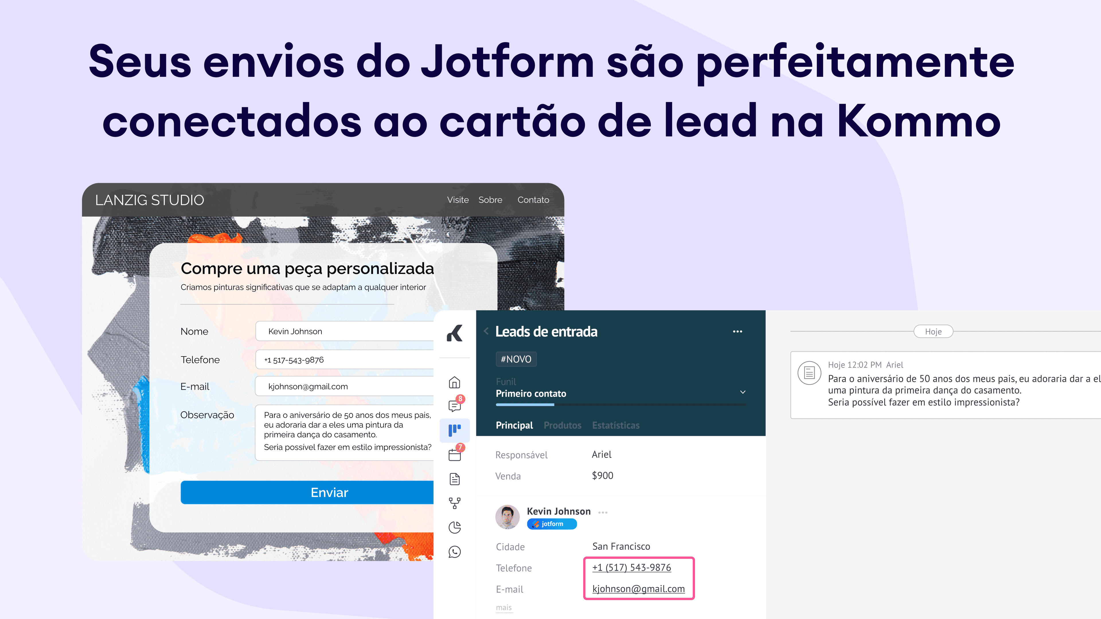Centralize os dados do cliente: todos os dados coletados pelo JotForm são armazenados no Kommo, oferecendo à sua equipe uma única fonte de informações sobre as interações com os clientes.