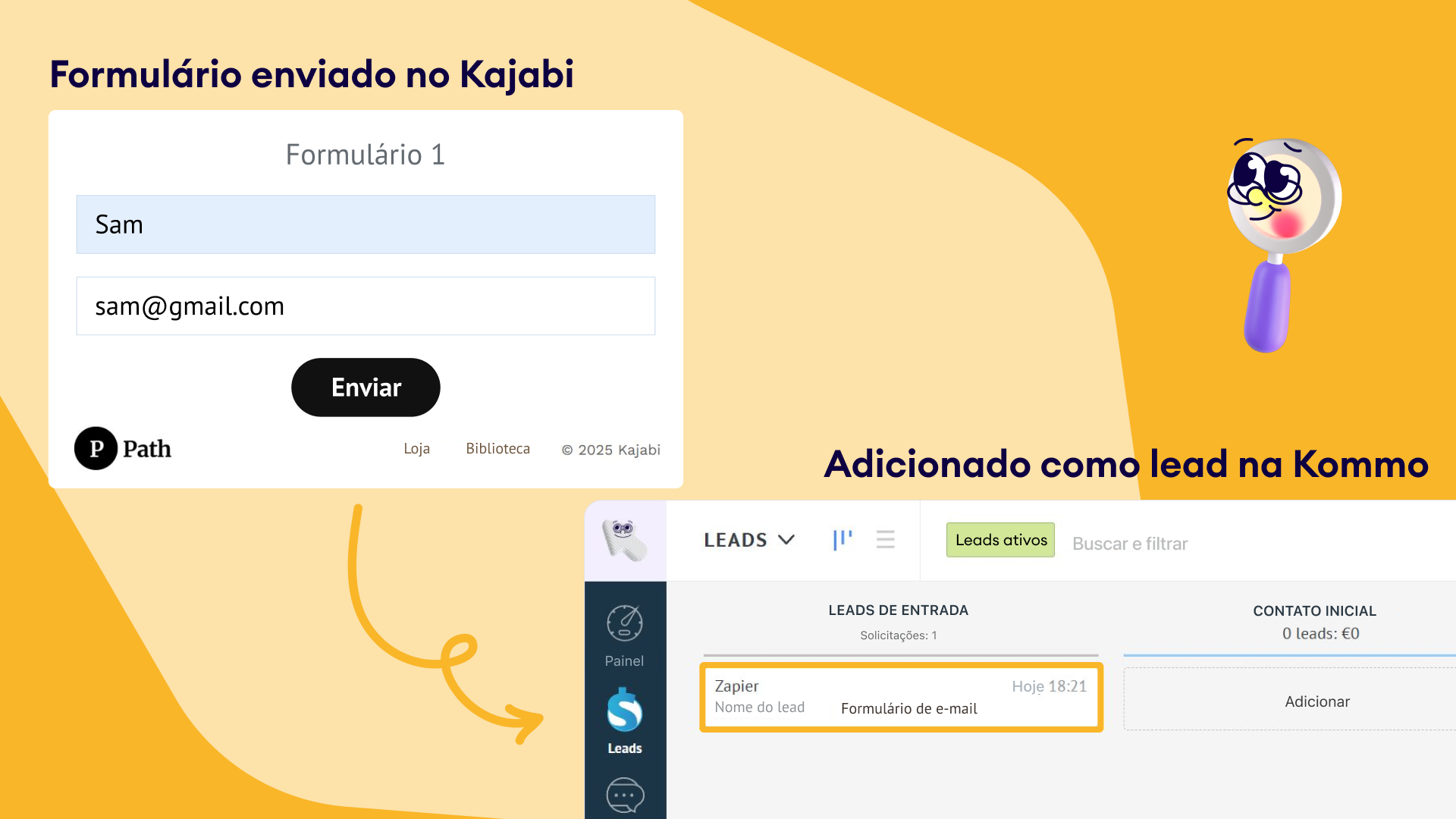 - Mapeie envios de formulários Kajabi ou assinaturas para campos de lead ou tarefa da Kommo.