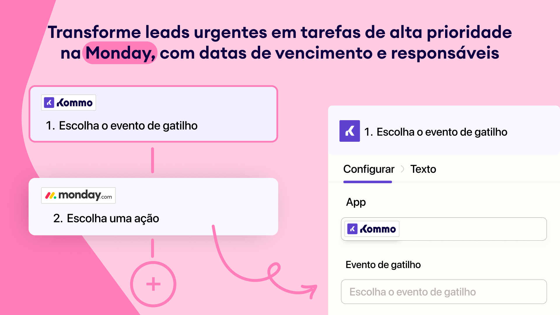 Atribuição baseada em prioridades: marque um lead como ‘Urgente’ na Kommo e crie automaticamente uma tarefa de alta prioridade na Monday com um prazo e um responsável.