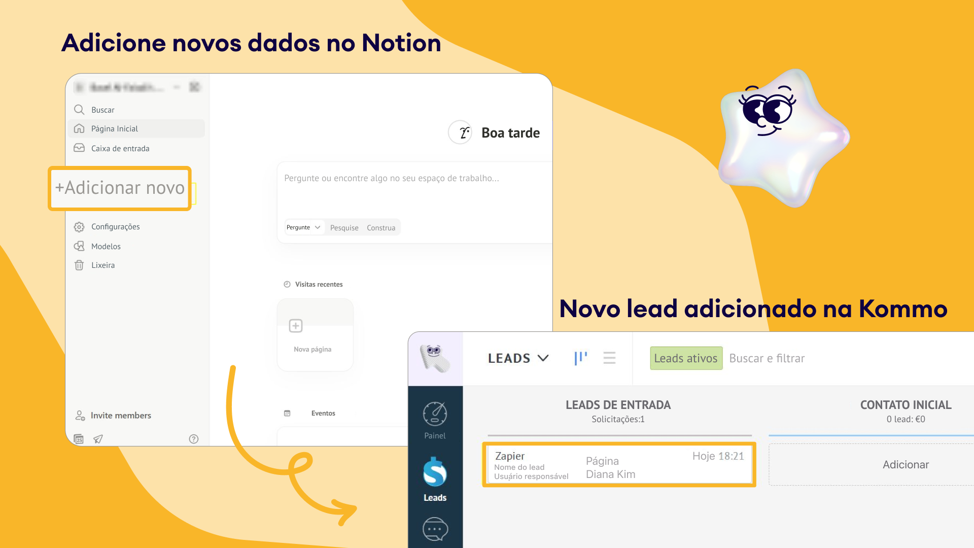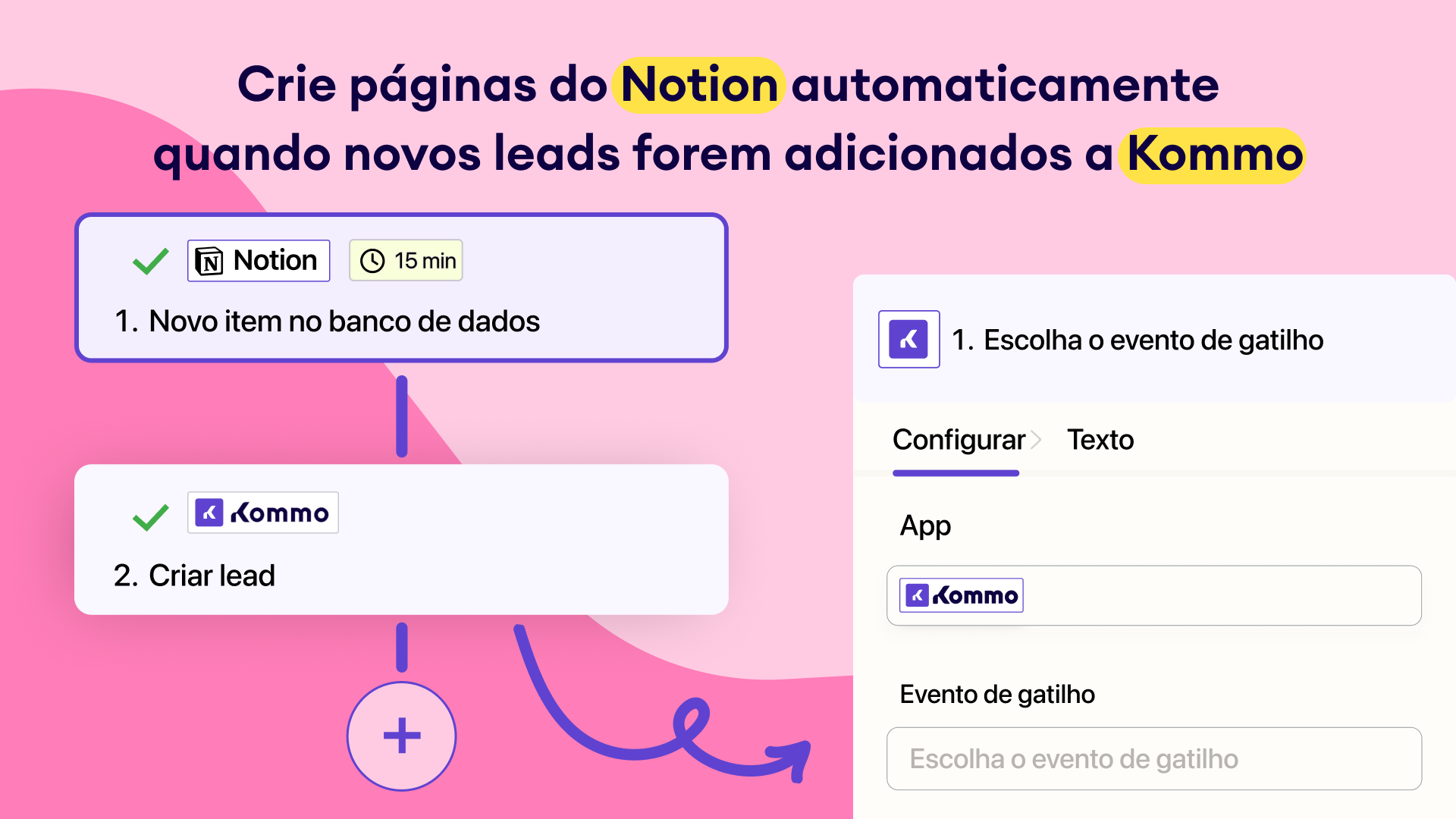 Criação automatizada de páginas: crie ou atualize páginas do Notion automaticamente quando novos leads forem adicionados ou quando os leads progredirem na Kommo.