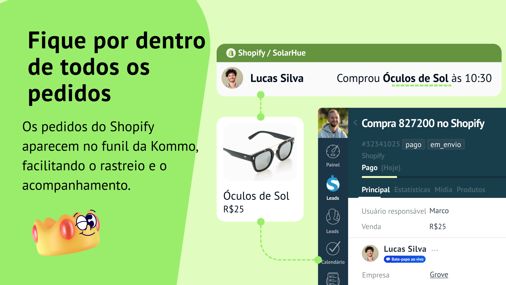 Descubra maneiras inteligentes de usar a integração do Shopify na Kommo para aumentar as vendas, automatizar operações e personalizar as experiências do cliente: