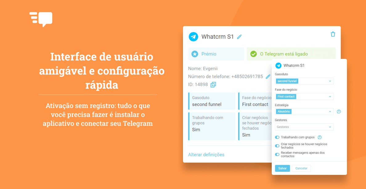 A integração do Telegram com Whatcrm traz novos recursos incríveis para sua conta, como: