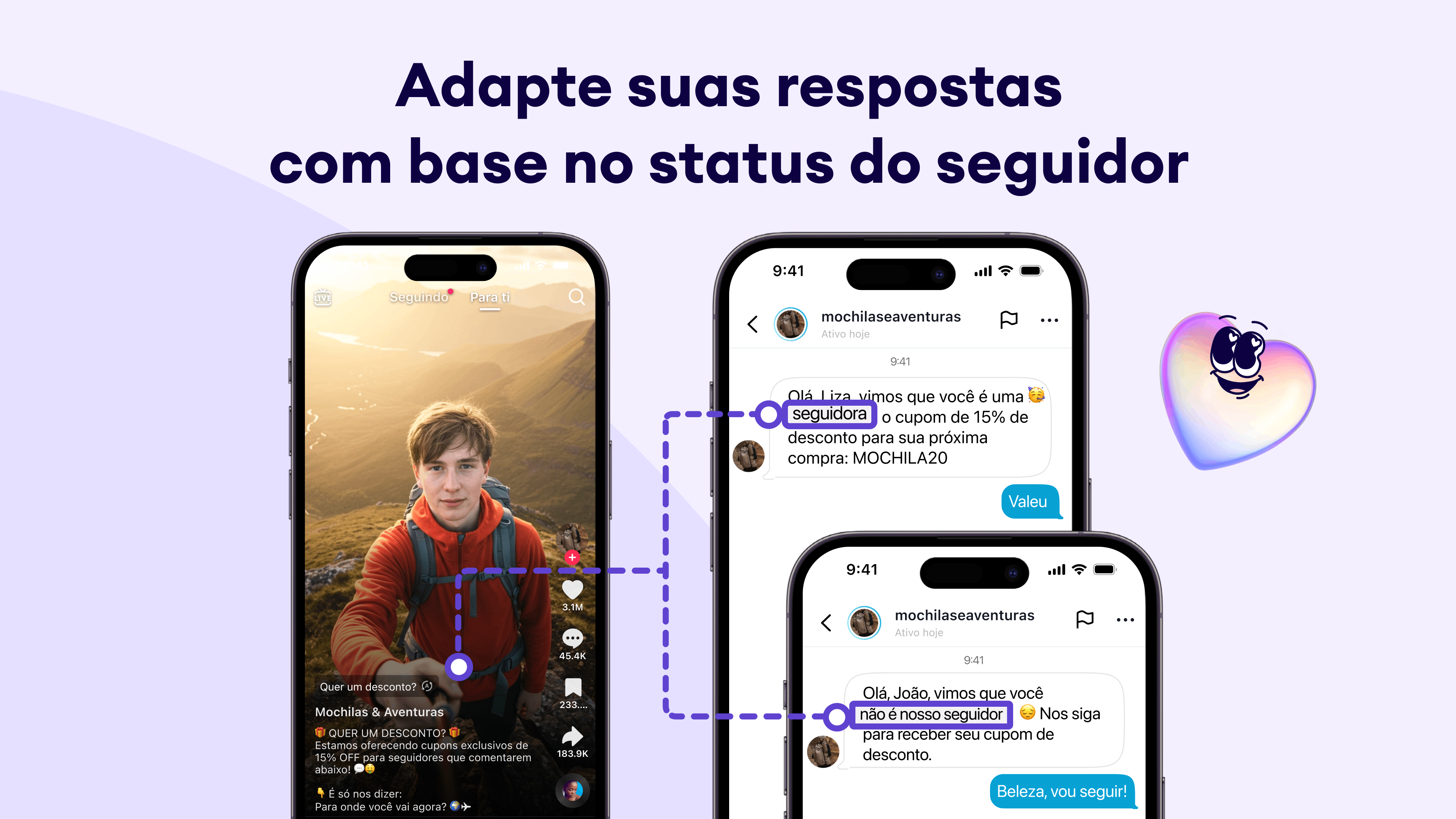Respostas específicas para anúncios: envie automaticamente mensagens personalizadas, como códigos de desconto ou ofertas especiais, com base no anúncio do TikTok ao qual o usuário respondeu.
