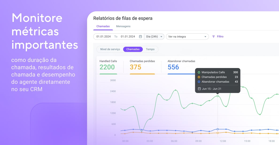 Você pode iniciar chamadas diretamente da Kommo com um único clique, economizando tempo e melhorando a eficiência. Você pode monitorar métricas importantes, como duração das chamadas, resultados das chamadas e desempenho dos agentes diretamente no seu CRM. Você também pode transformar seu sistema de Resposta de Voz Interativa (IVR) com dados do CRM para criar jornadas dinâmicas e personalizadas que aumentam a satisfação do cliente.