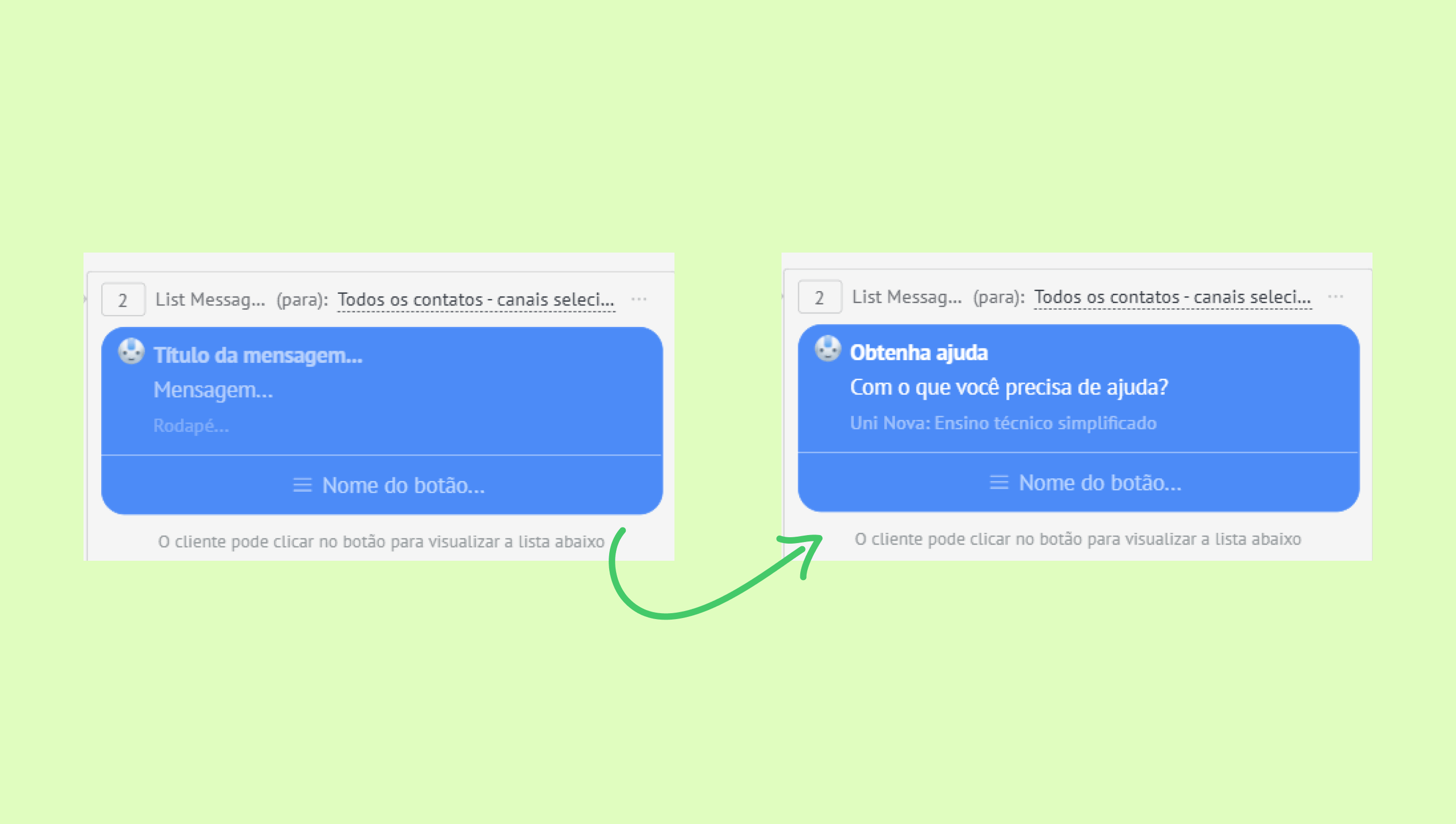 - Título da mensagem (opcional): Um título curto para apresentar a lista (máximo de 24 caracteres).