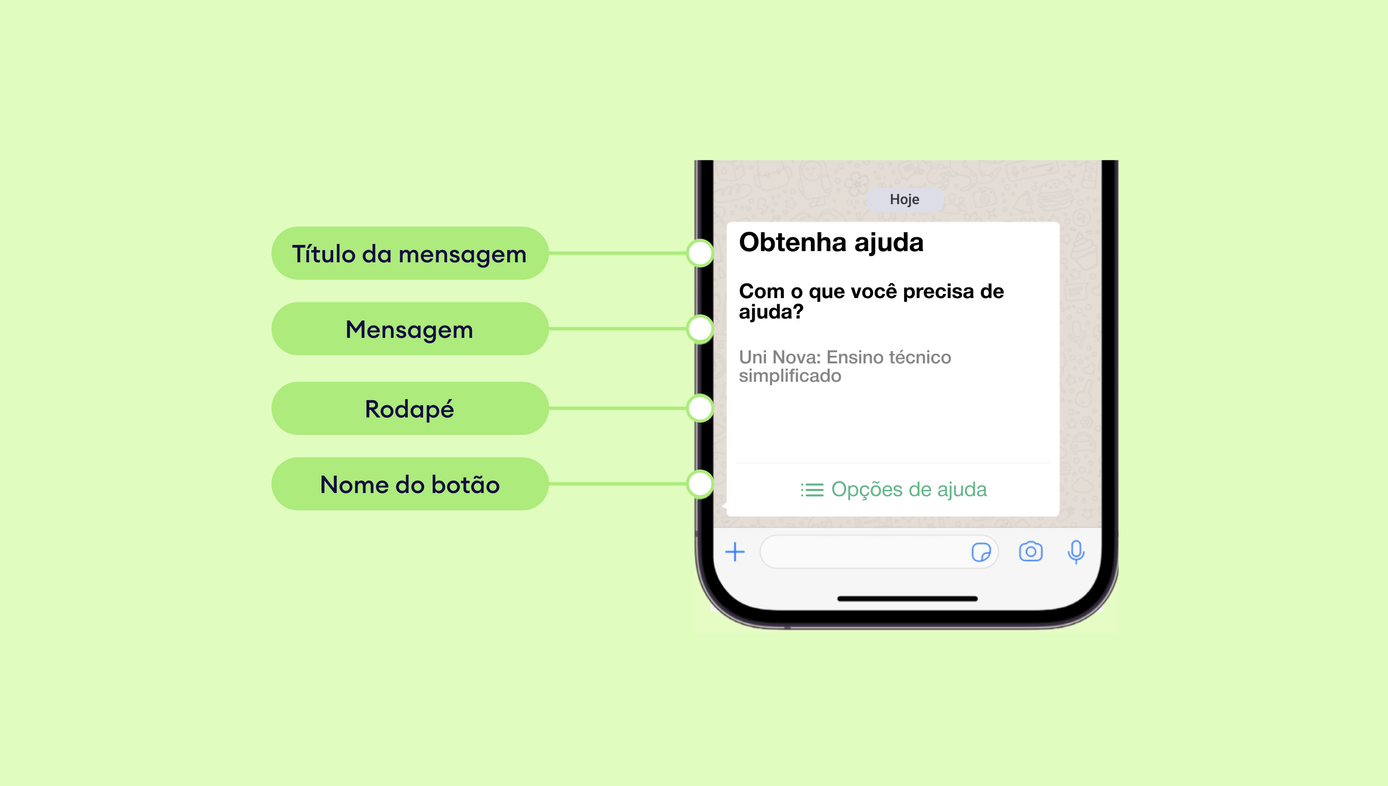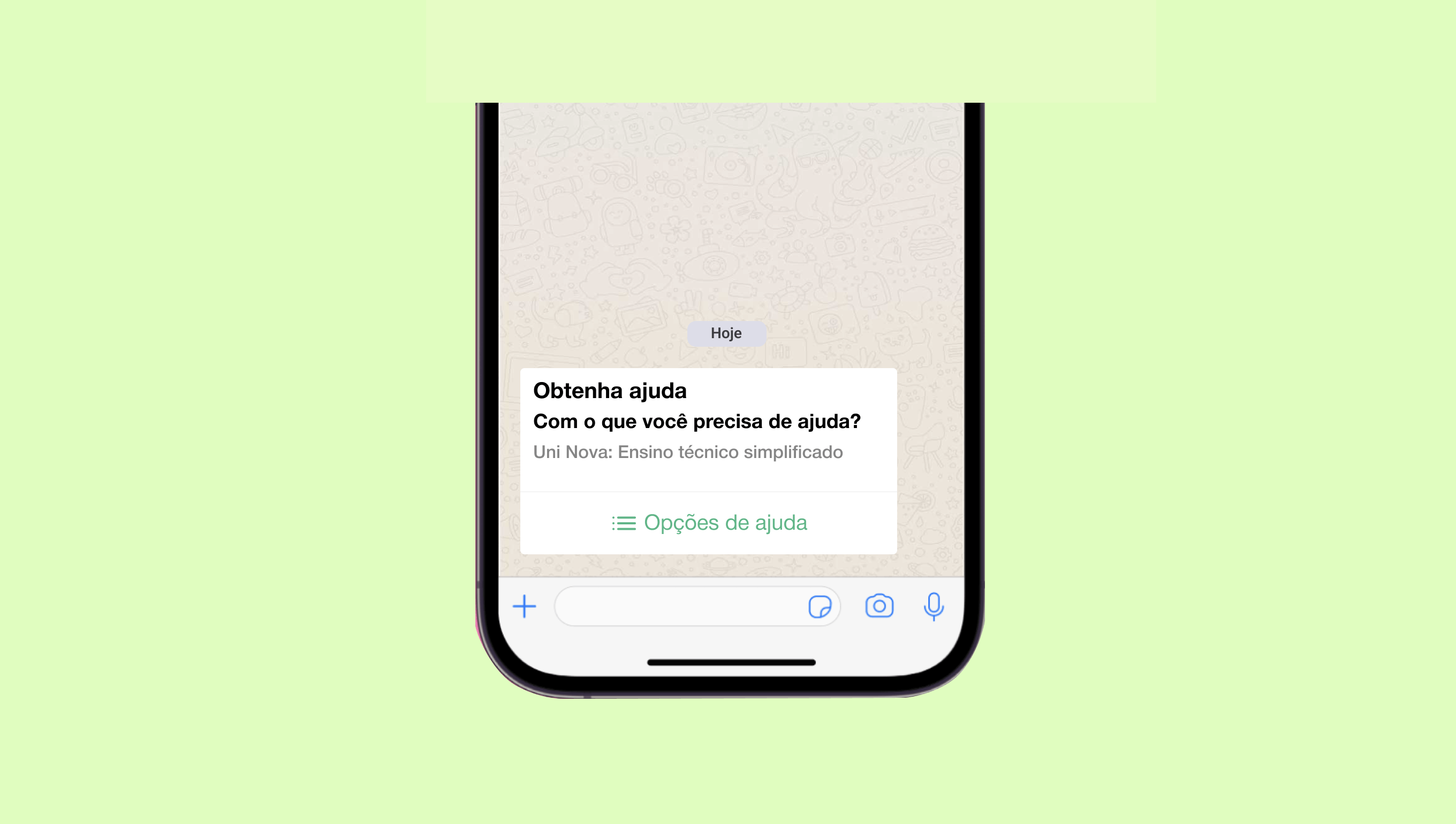 É assim que suas opções serão mostradas no chat do WhatsApp: