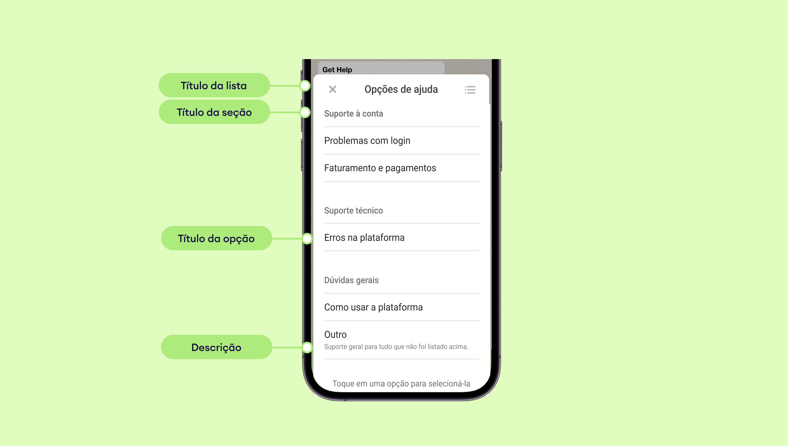 - Mensagem: Explique para que serve a lista ou qual ação o usuário deve realizar.