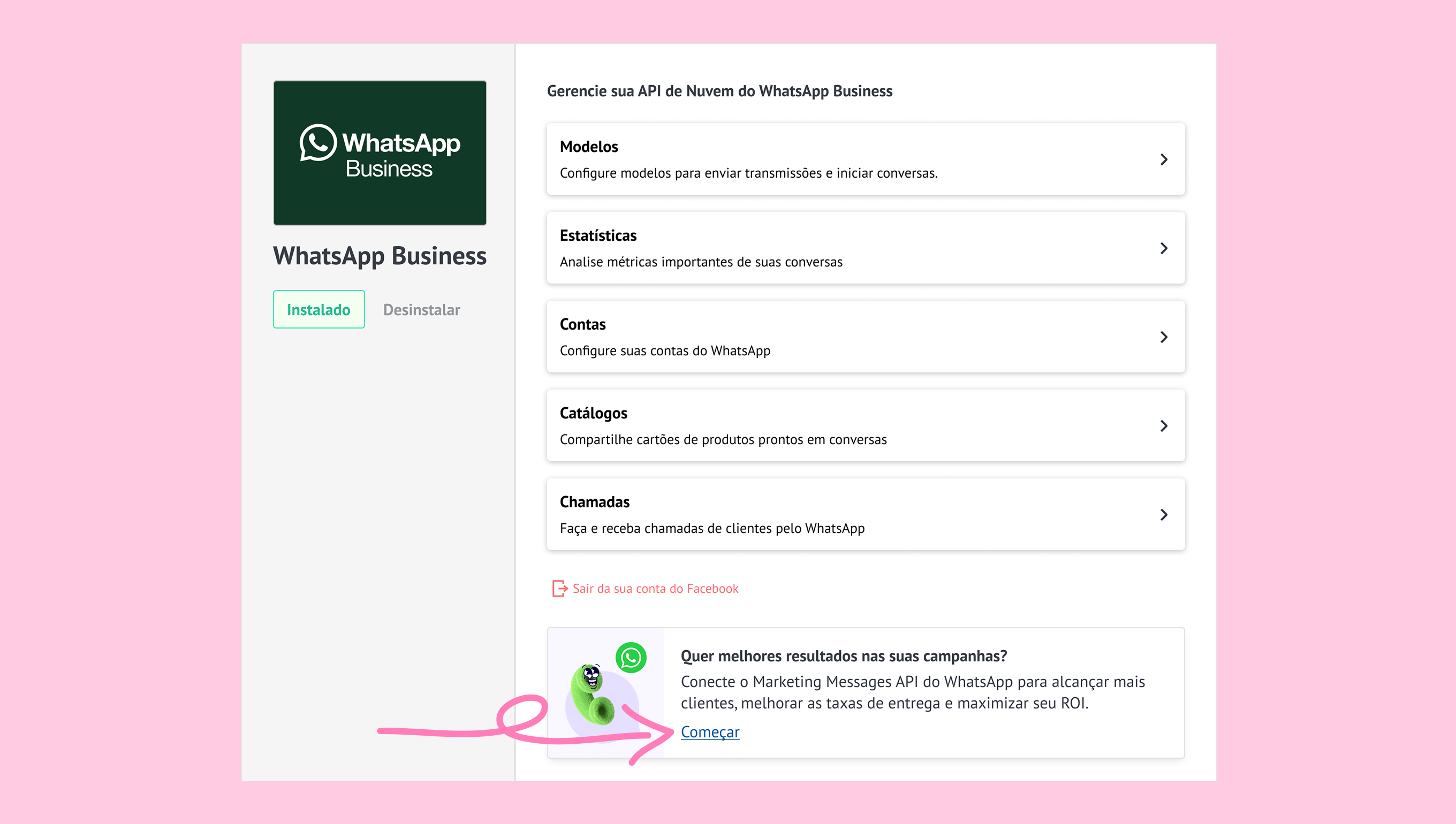 Existem duas maneiras de ativar a API de Mensagens de Marketing: