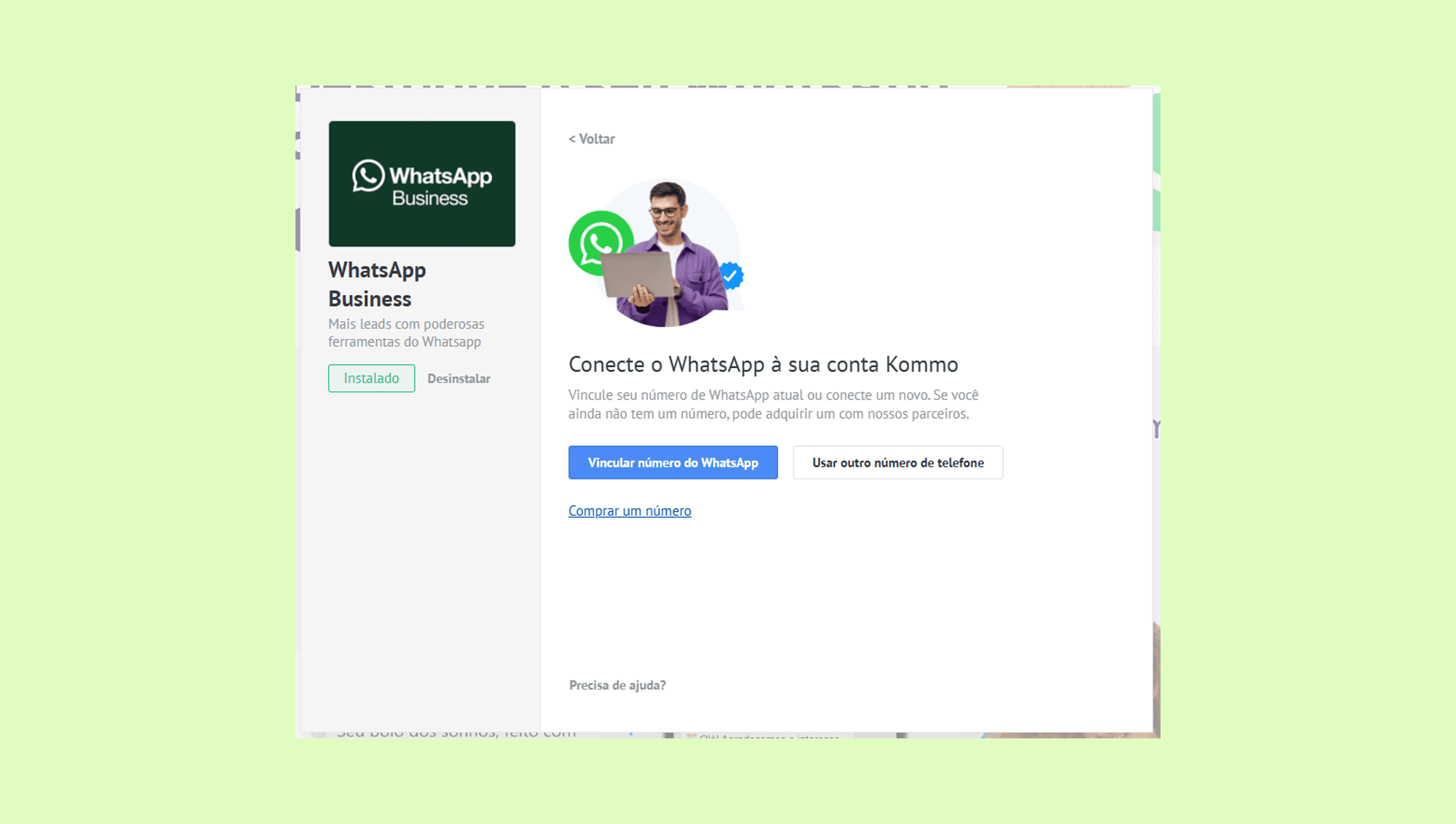 Importante: Seu número do WhatsApp precisa estar vinculado a uma conta do WhatsApp Business no mesmo Gerenciador de Negócios da Meta que sua conta de anúncios. Caso contrário, a Kommo não conseguirá capturar os dados UTM dos seus anúncios.