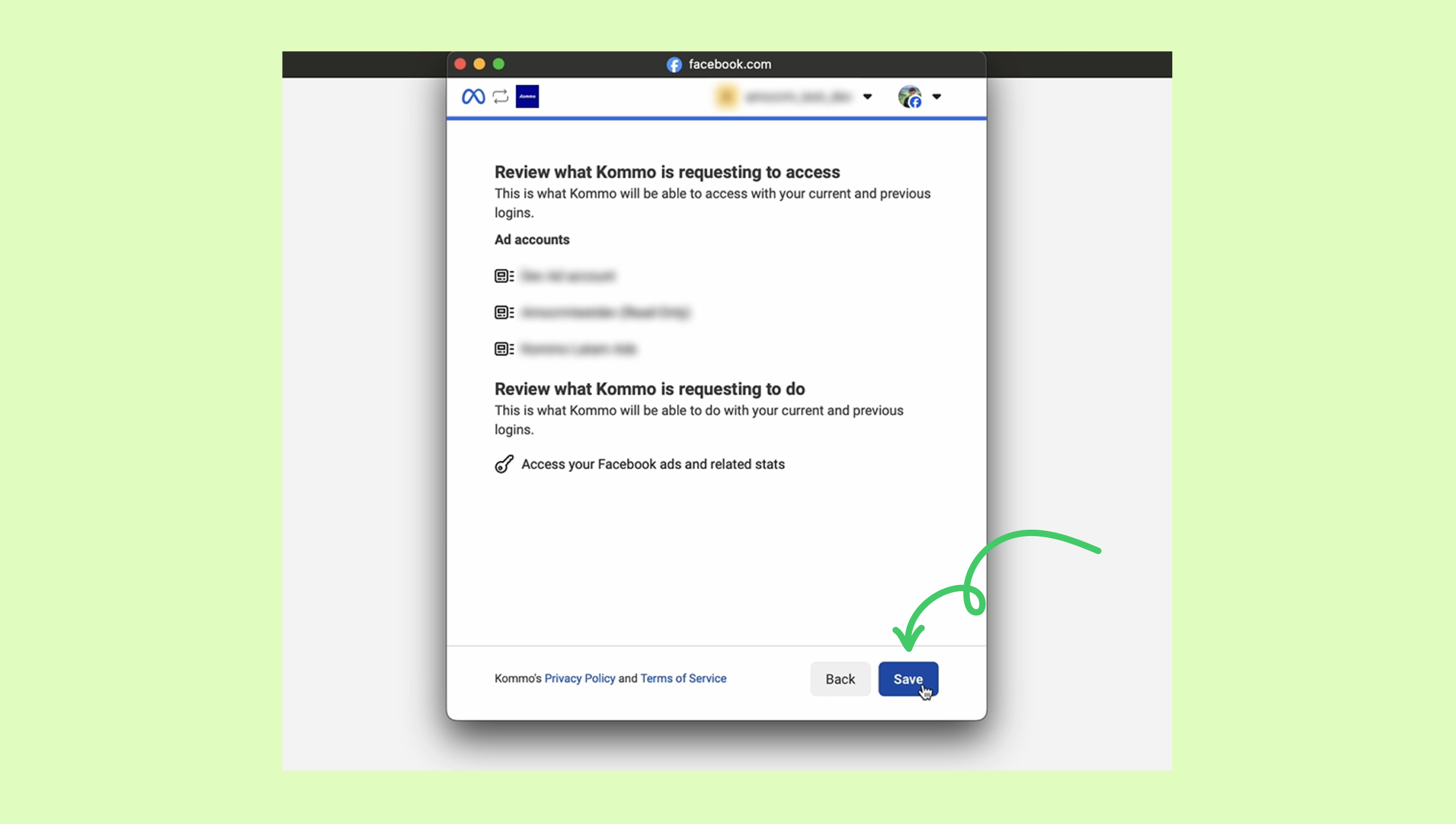 Conceda acesso à sua conta de anúncios. Certifique-se de que ela pertença ao mesmo Gerenciador de Negócios Meta da sua conta do WhatsApp Business. Em seguida, selecione o portfólio de negócios correto.