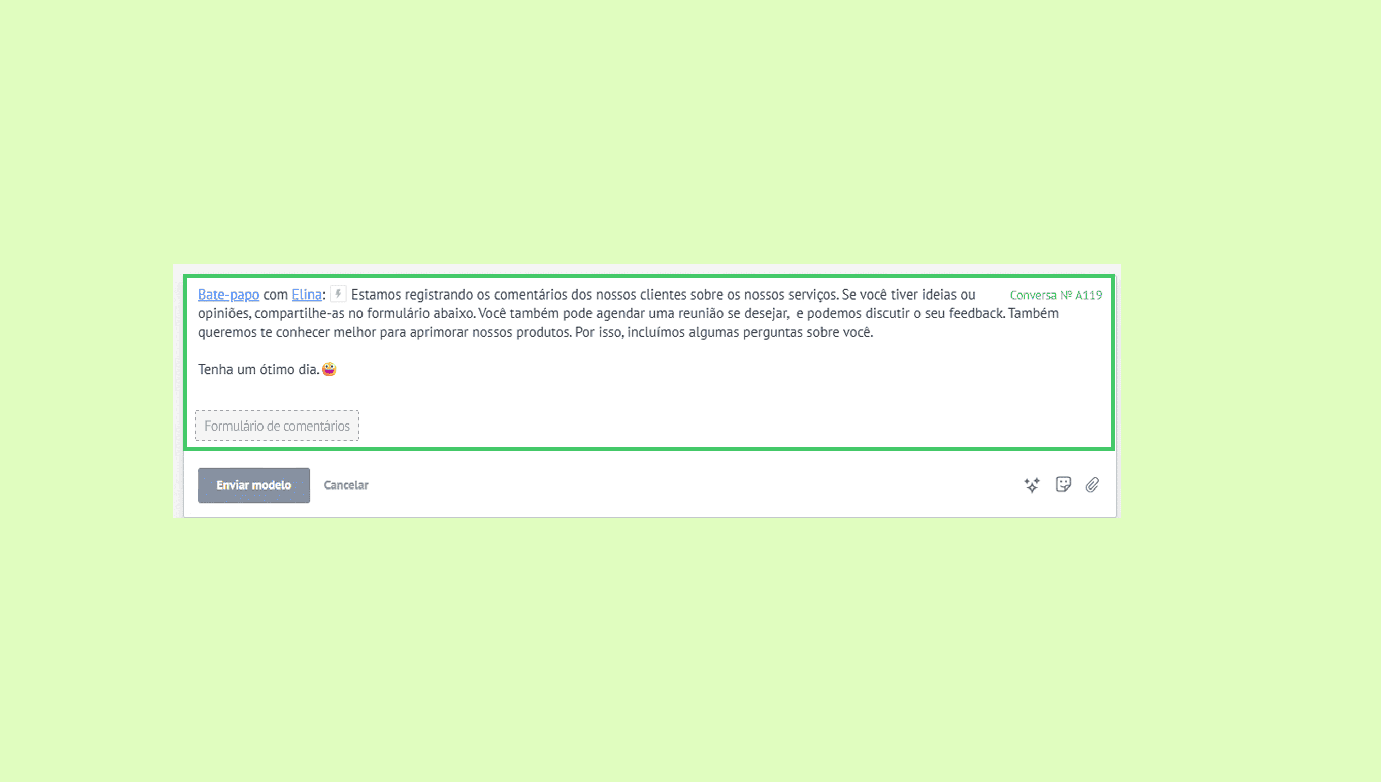 - A mensagem e o botão aparecem no chat. Quando o cliente clicar nele, o formulário será aberto.