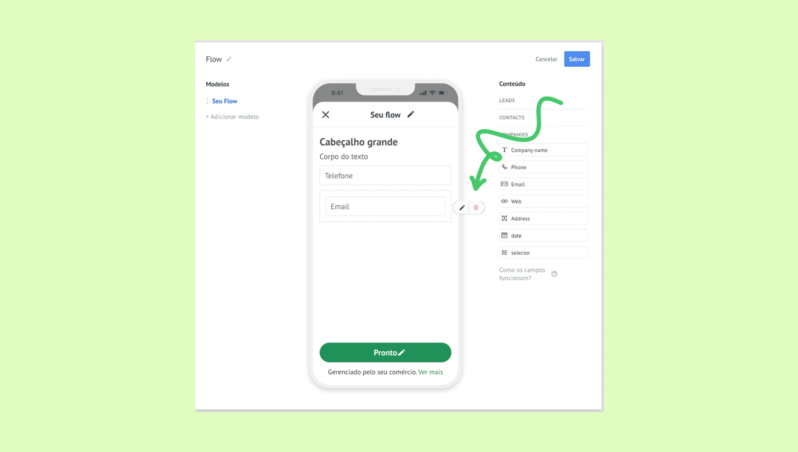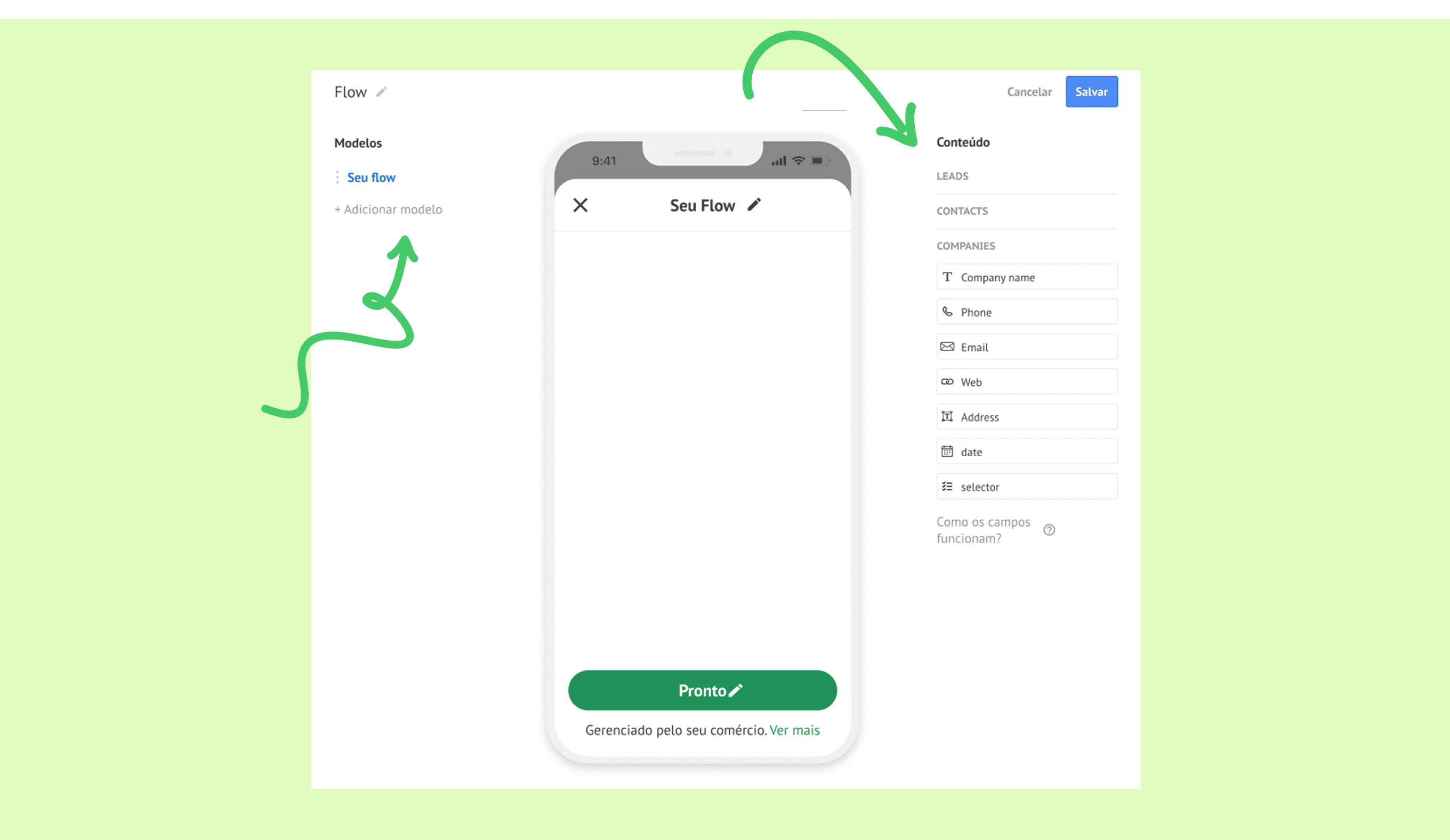 Todas as respostas dos clientes dos modelos do Flow são salvas automaticamente no seu CRM.
