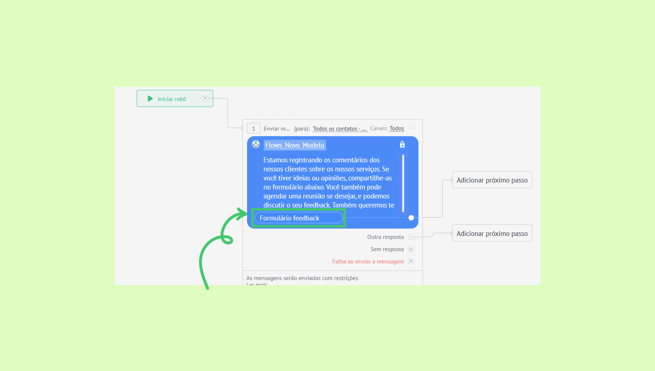 Observação: atualmente, você pode adicionar apenas um botão por Flow na etapa de mensagem.