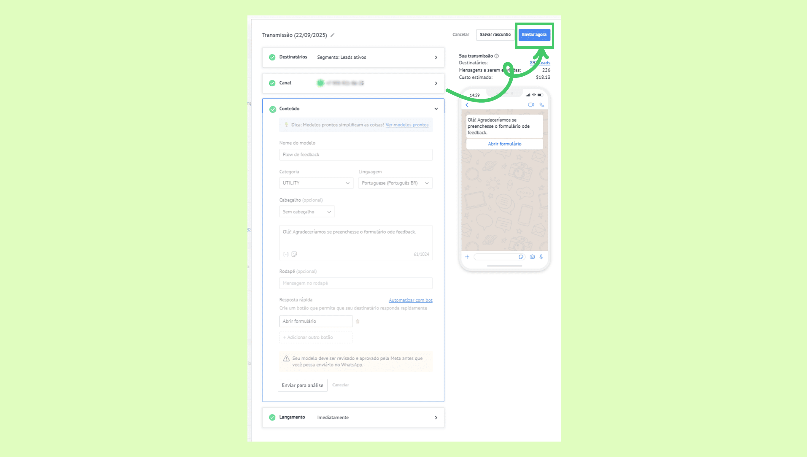 Você também pode enviar modelos de fluxo por meio de campanhas de transmissão: