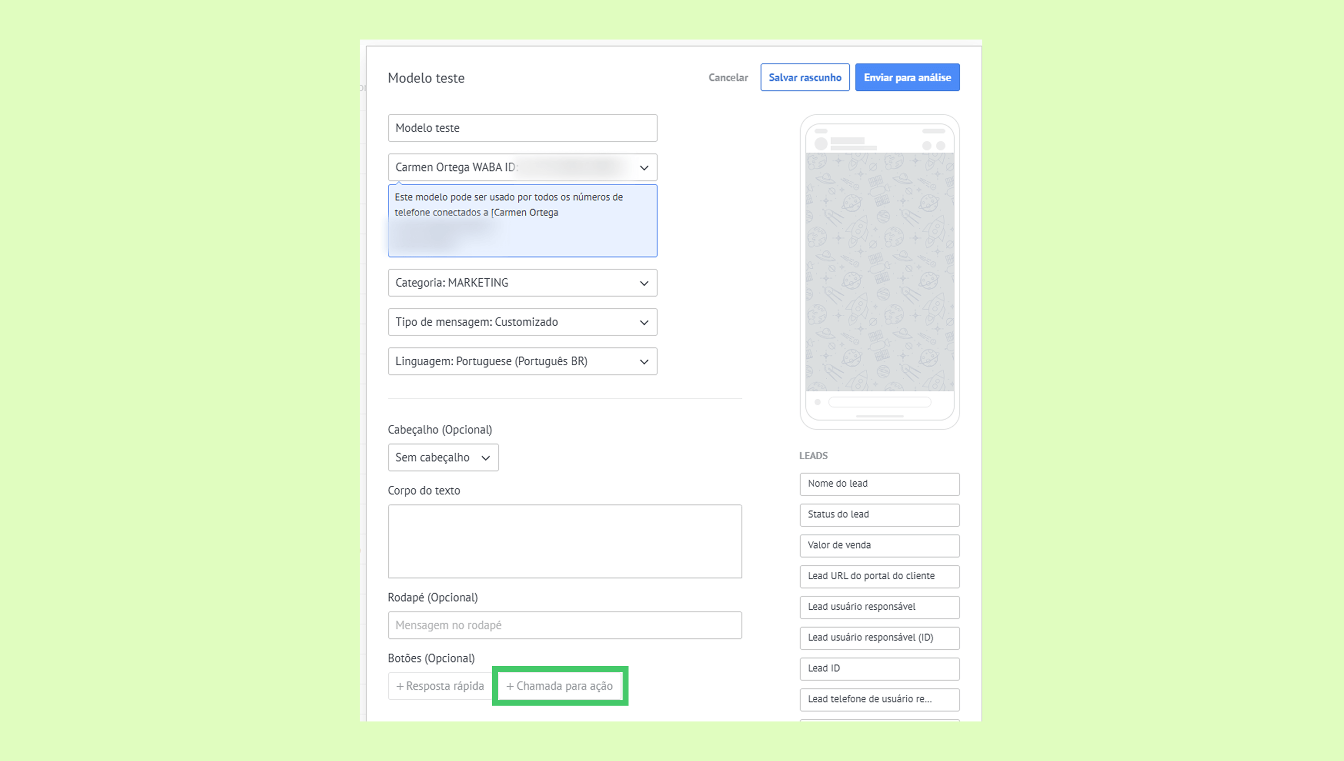Assim que o número for reconectado, tente enviar um modelo pré-aprovado para um lead de teste. Se a mensagem ainda não for enviada, aguarde alguns minutos e tente novamente. Às vezes, demora um pouco para as alterações serem sincronizadas.