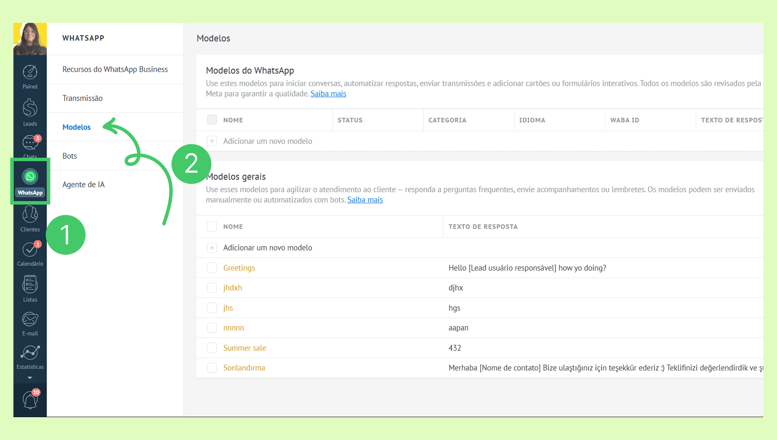 Na Kommo, acesse WhatsApp → Modelos → Modelos do WhatsApp.