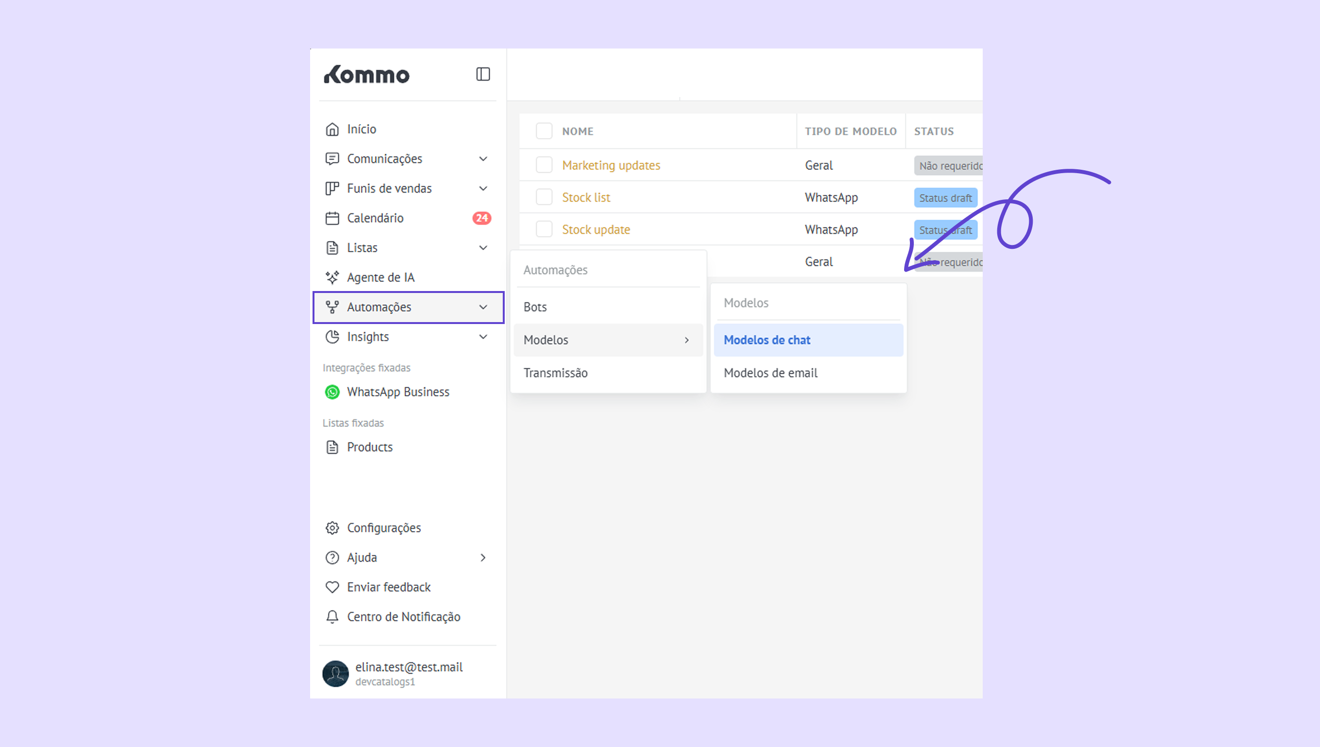Contatar suporte da Kommo – inicie um chat com nossa equipe para obter ajuda personalizada. -
