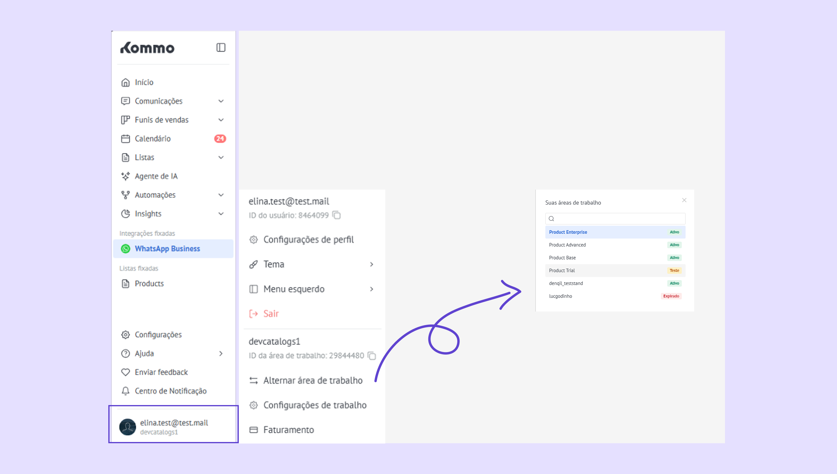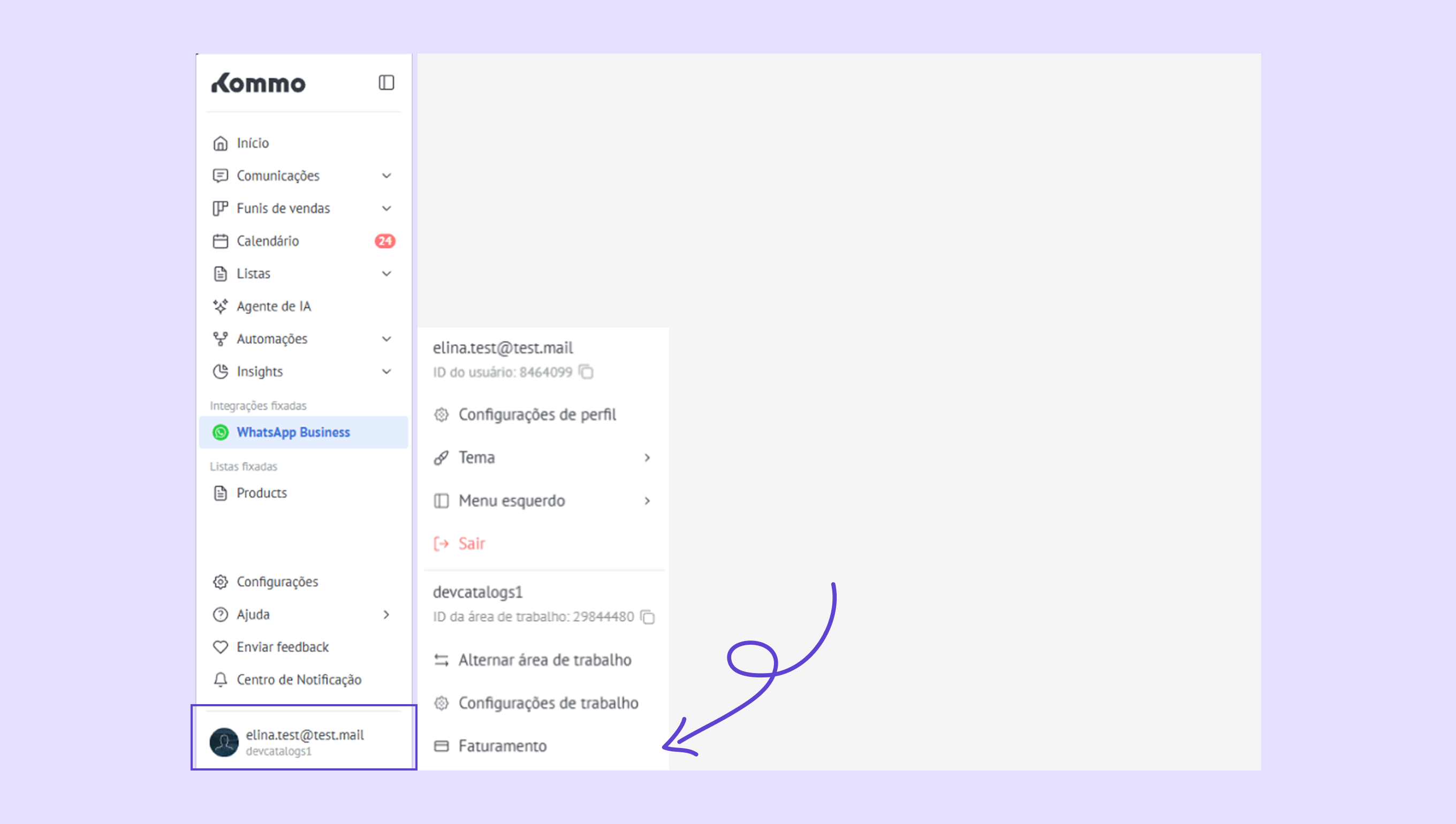 Faturamento – veja seu plano da Kommo e quantos dias de assinatura ainda restam. -