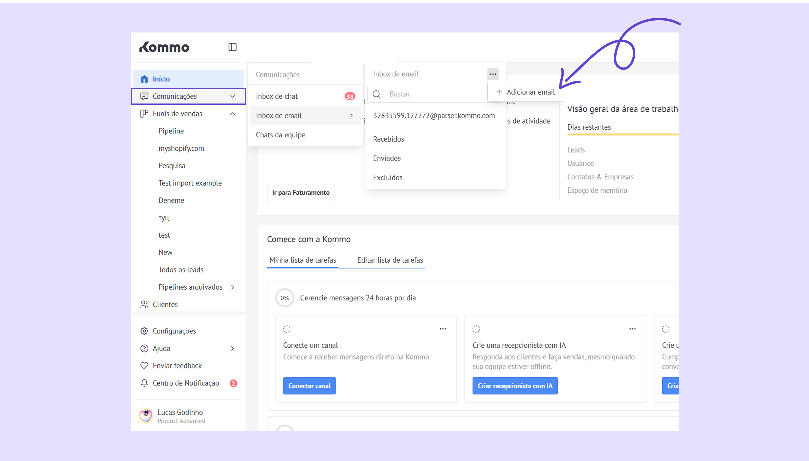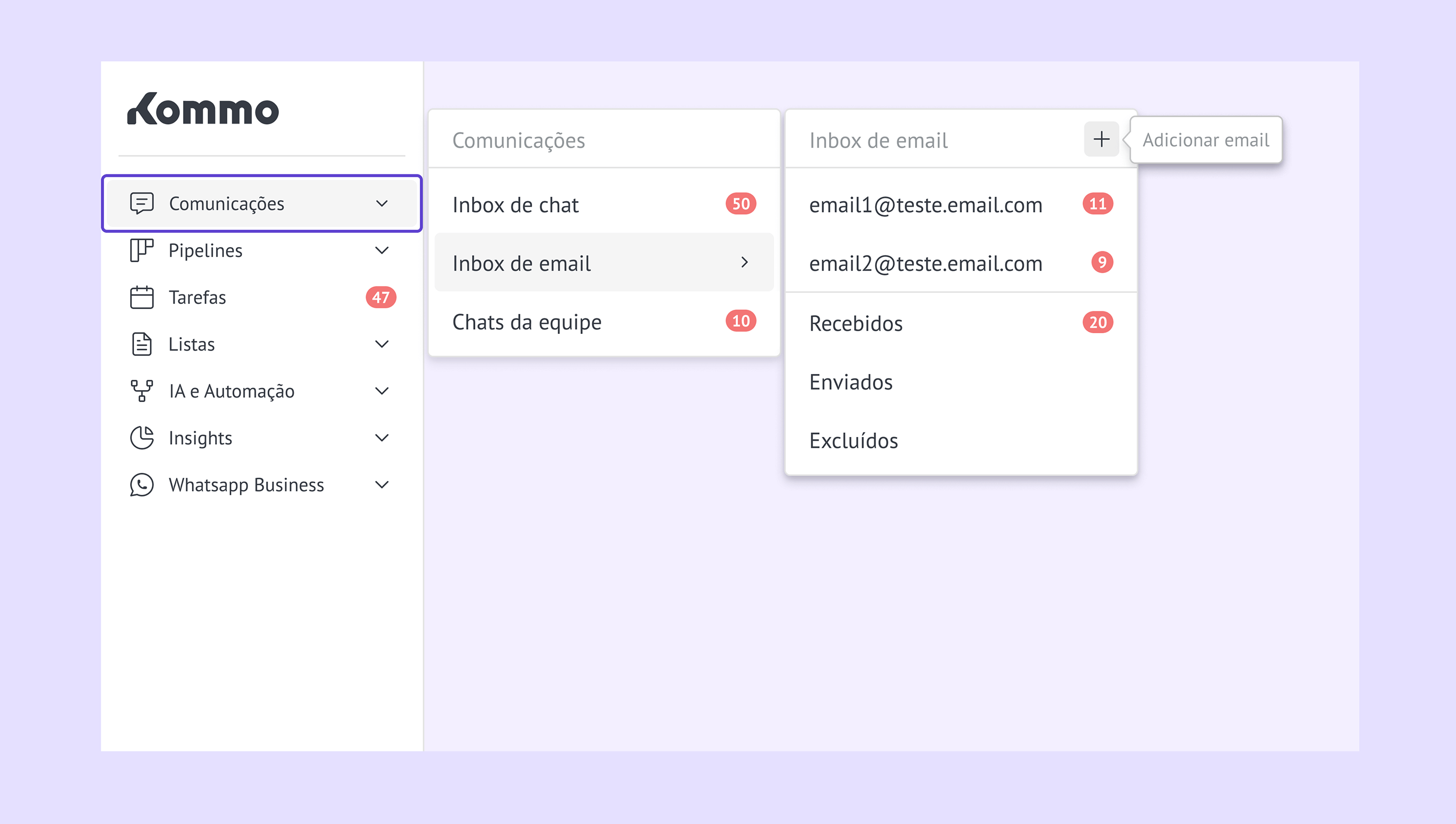 Inbox de email – envie, receba e organize emails diretamente na Kommo.