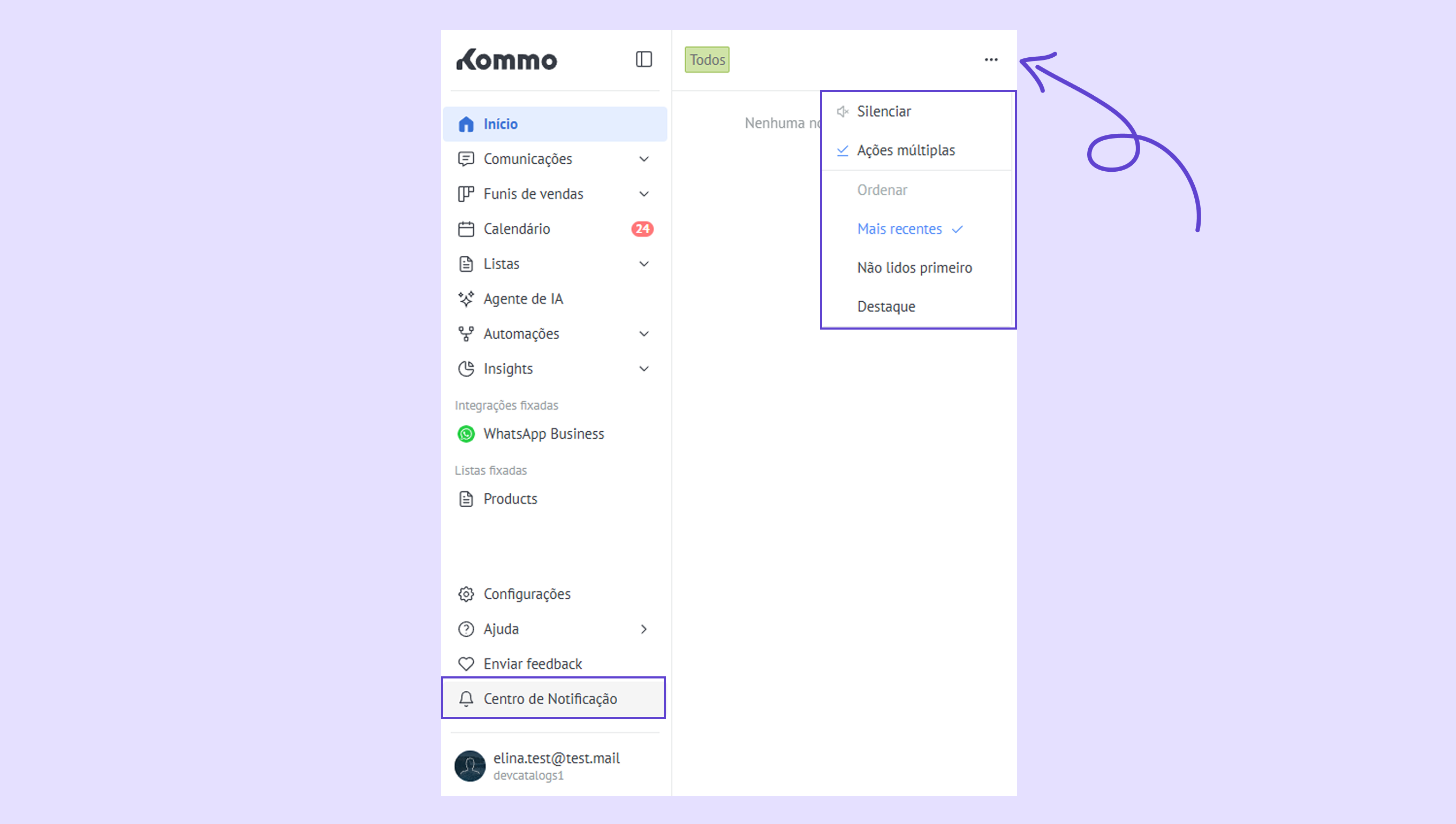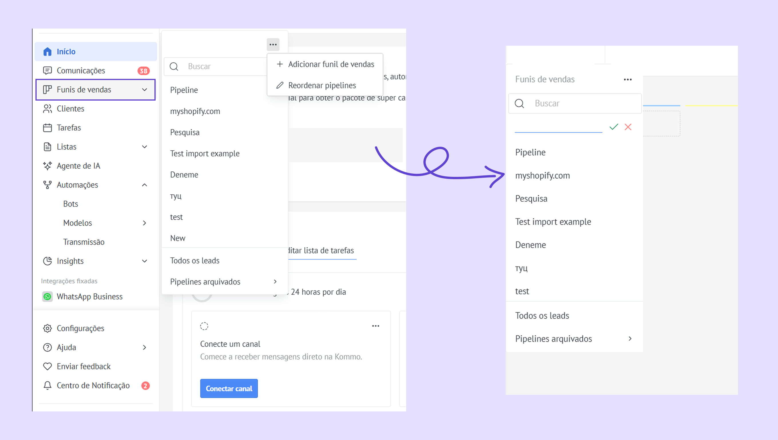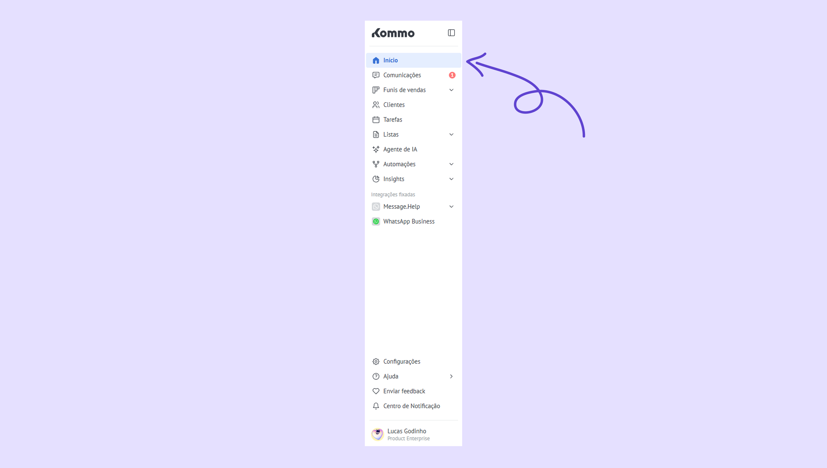 Conheça o novo menu esquerdo da Kommo