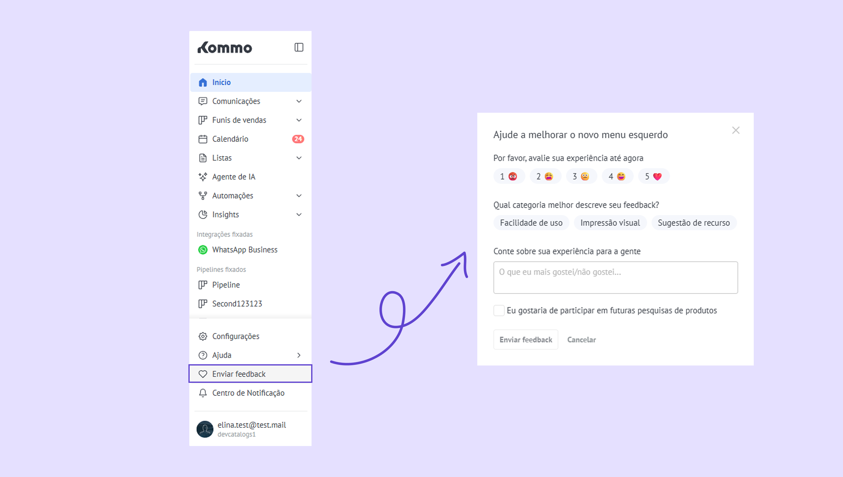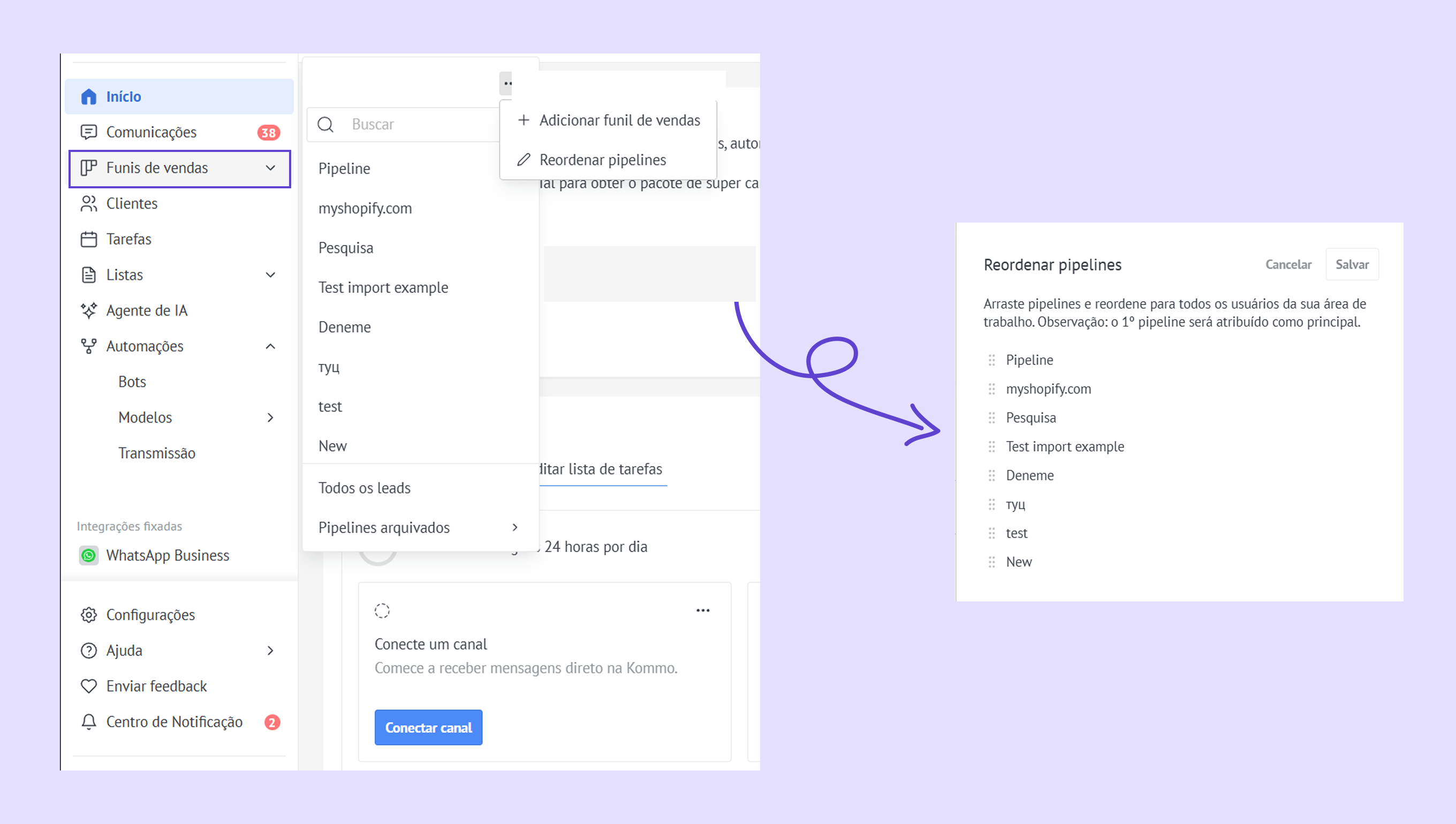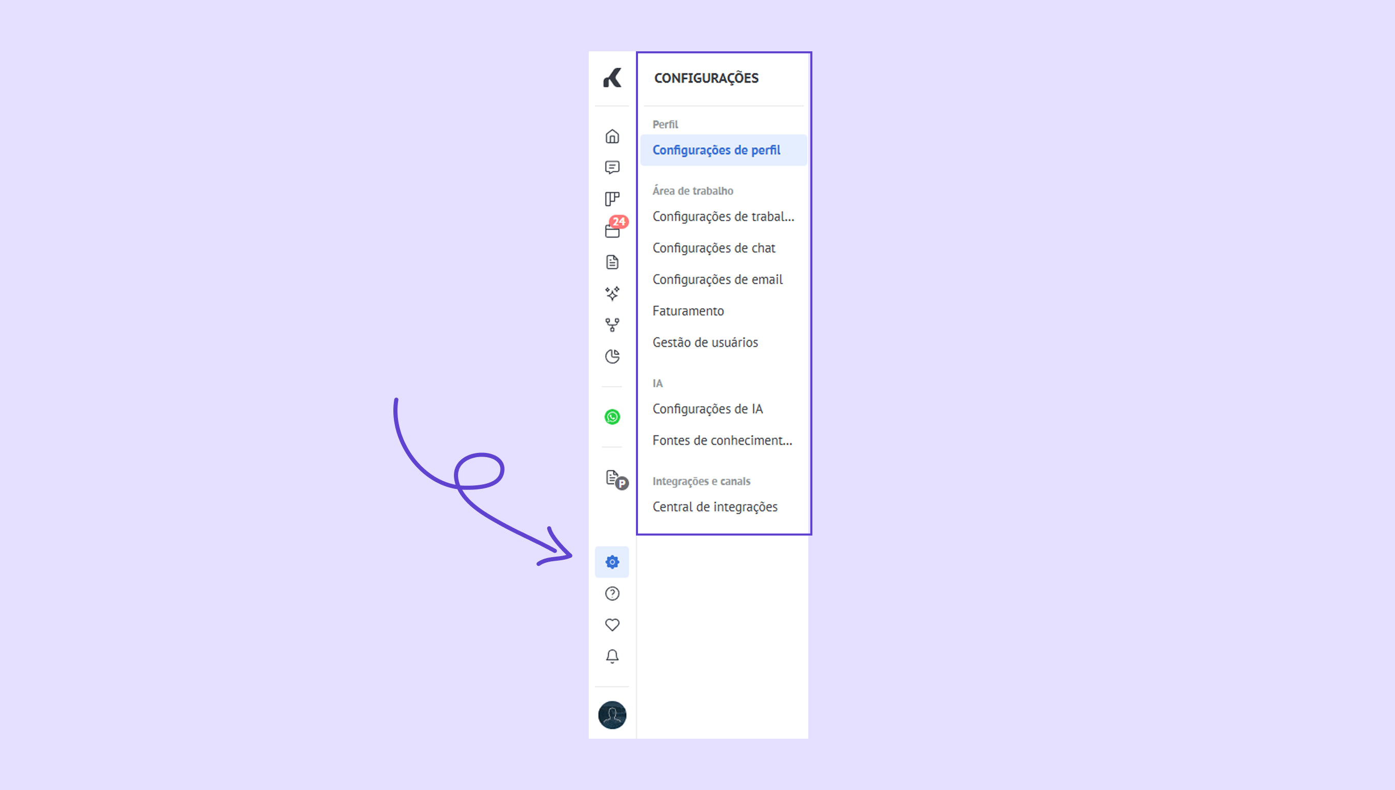 Conheça o novo menu esquerdo da Kommo