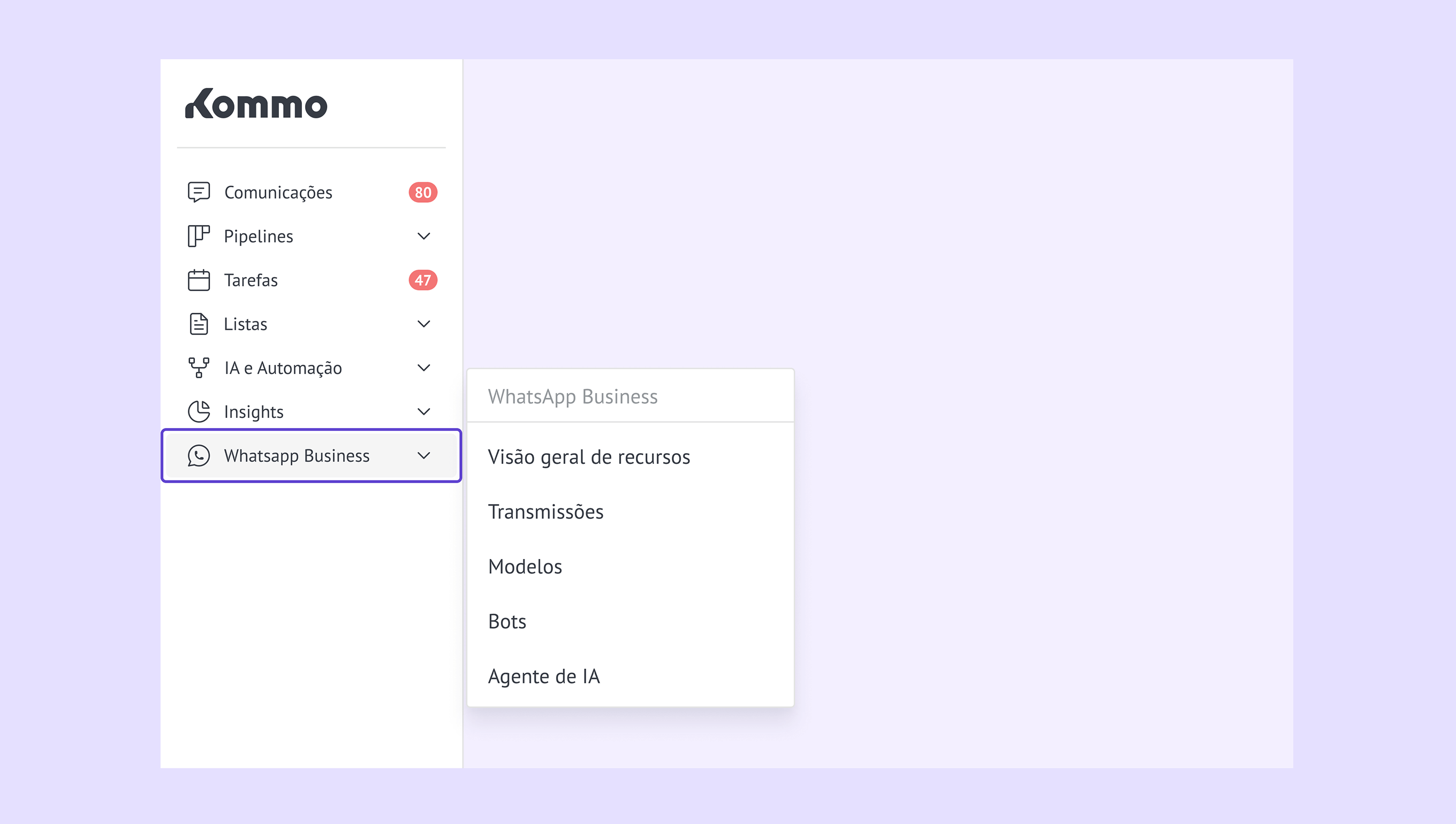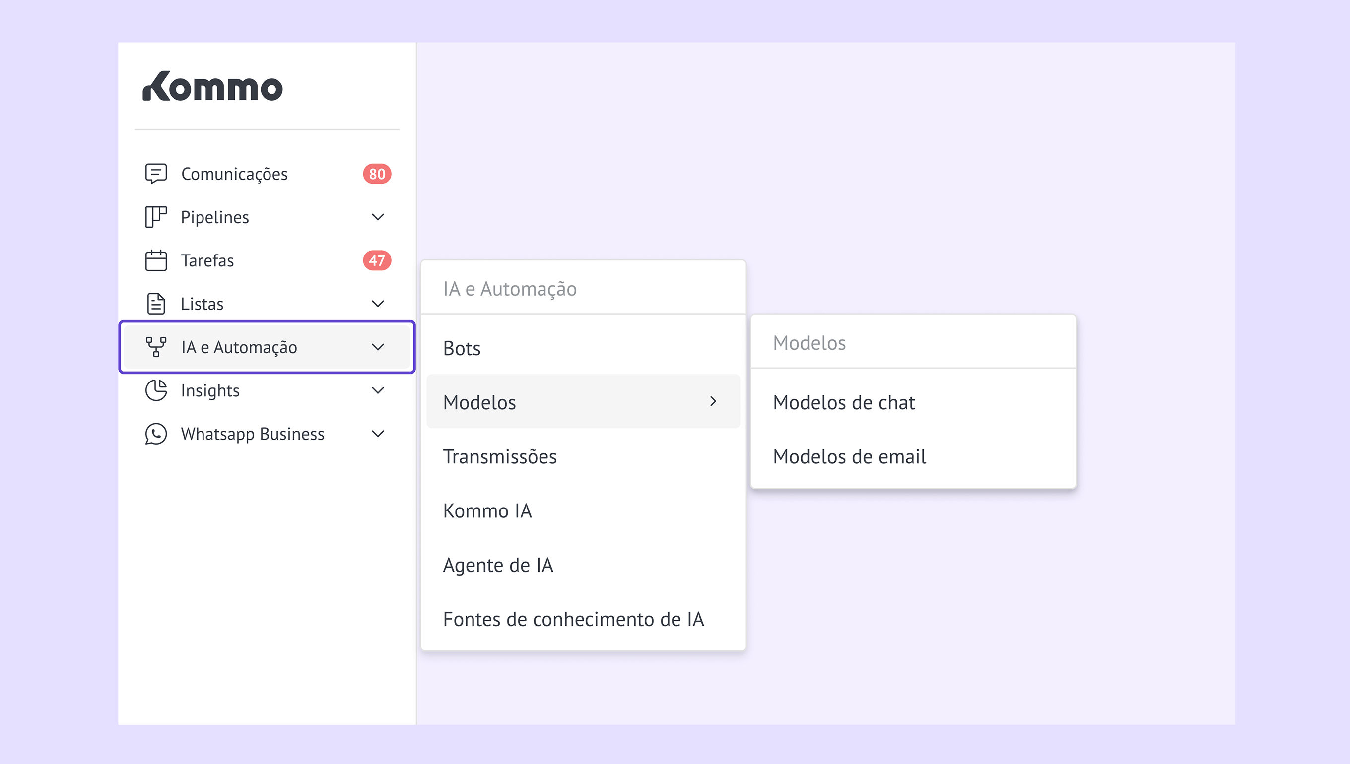 Kommo IA – obtenha assistência com tecnologia de IA para escrever, responder e gerenciar conversas com clientes. -
