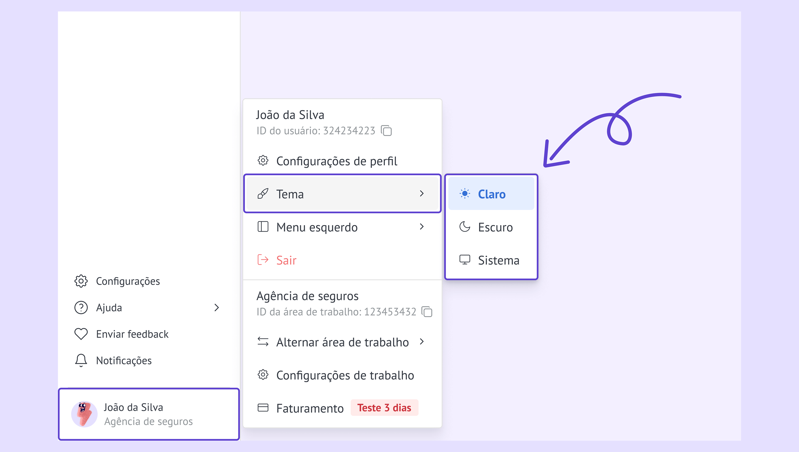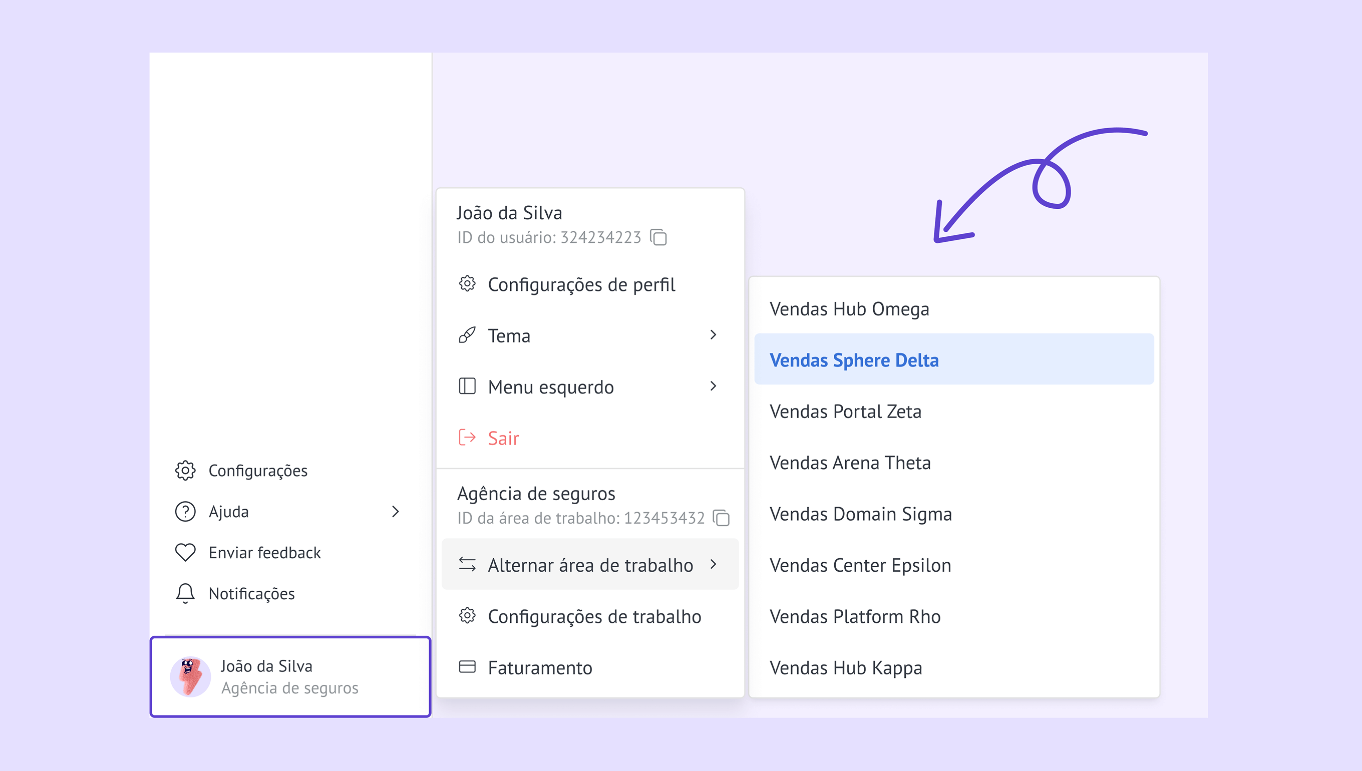 Configurações mais inteligentes – Perfil, notificações, área de trabalho e faturamento agora estão reunidos em um só lugar, simplificando o gerenciamento de contas. -