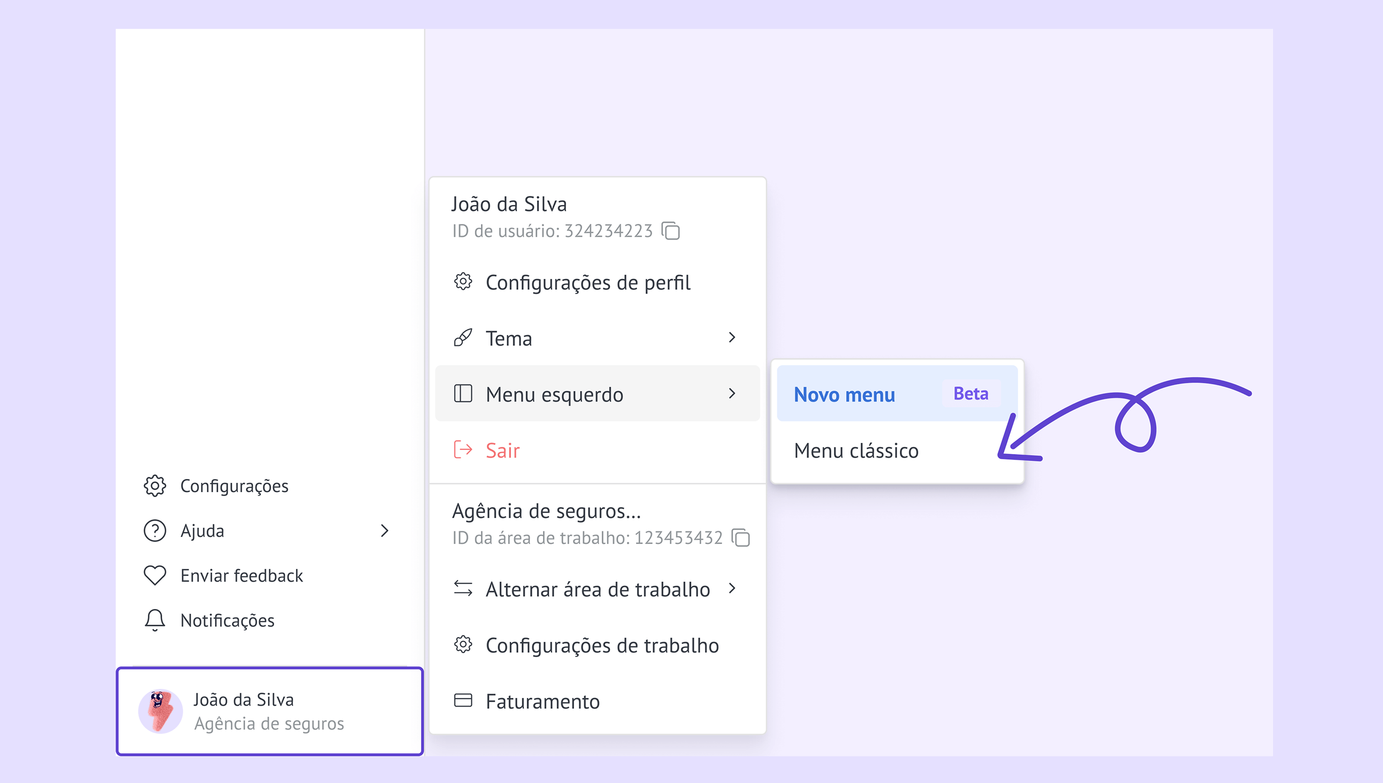 Ver suas notificações Sair Voltar para o menu esquerdo clássico -