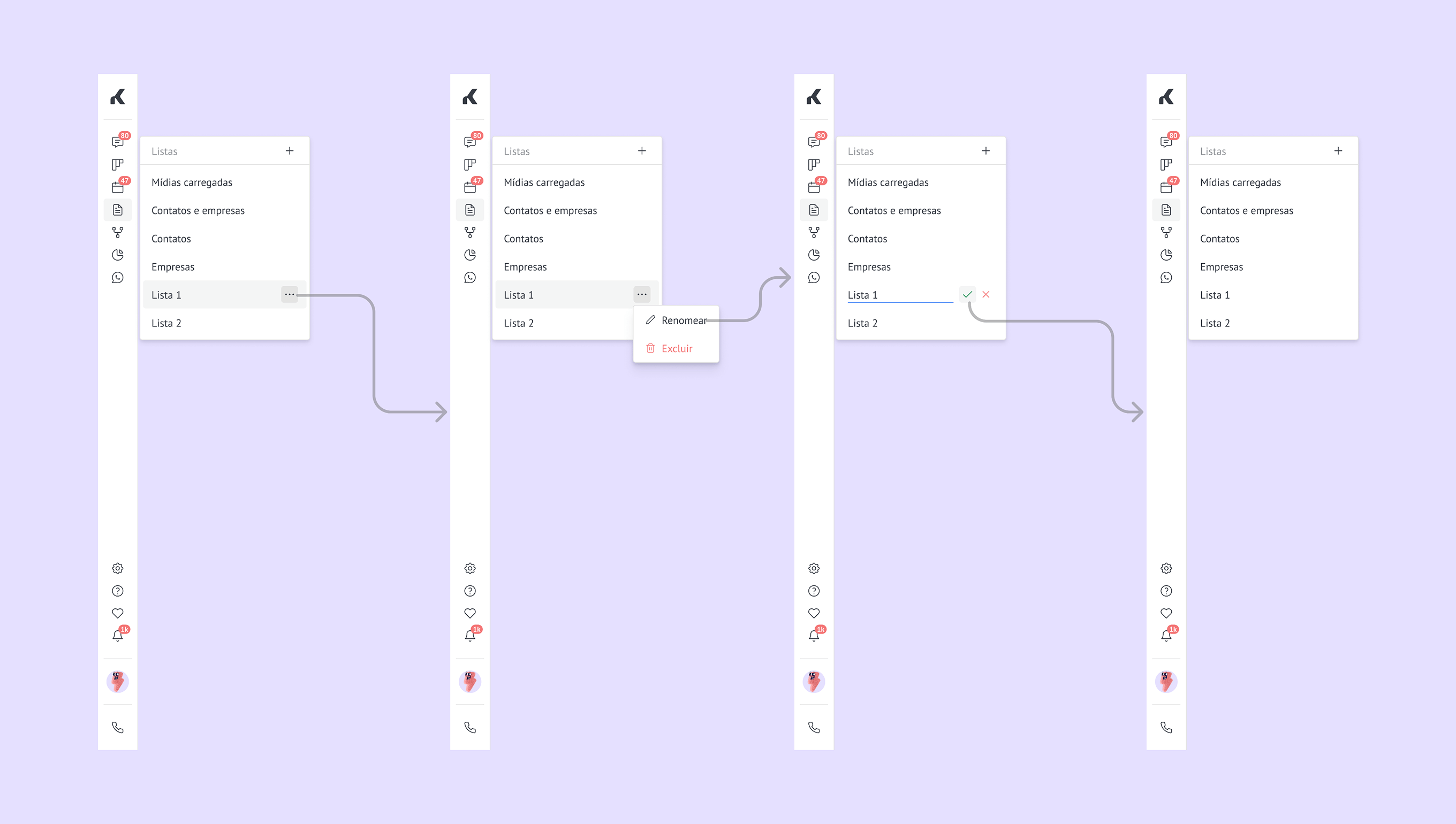 Renomeie uma lista – passe o mouse sobre qualquer nome de lista e abra o menu … para atualizá-la sempre que necessário.