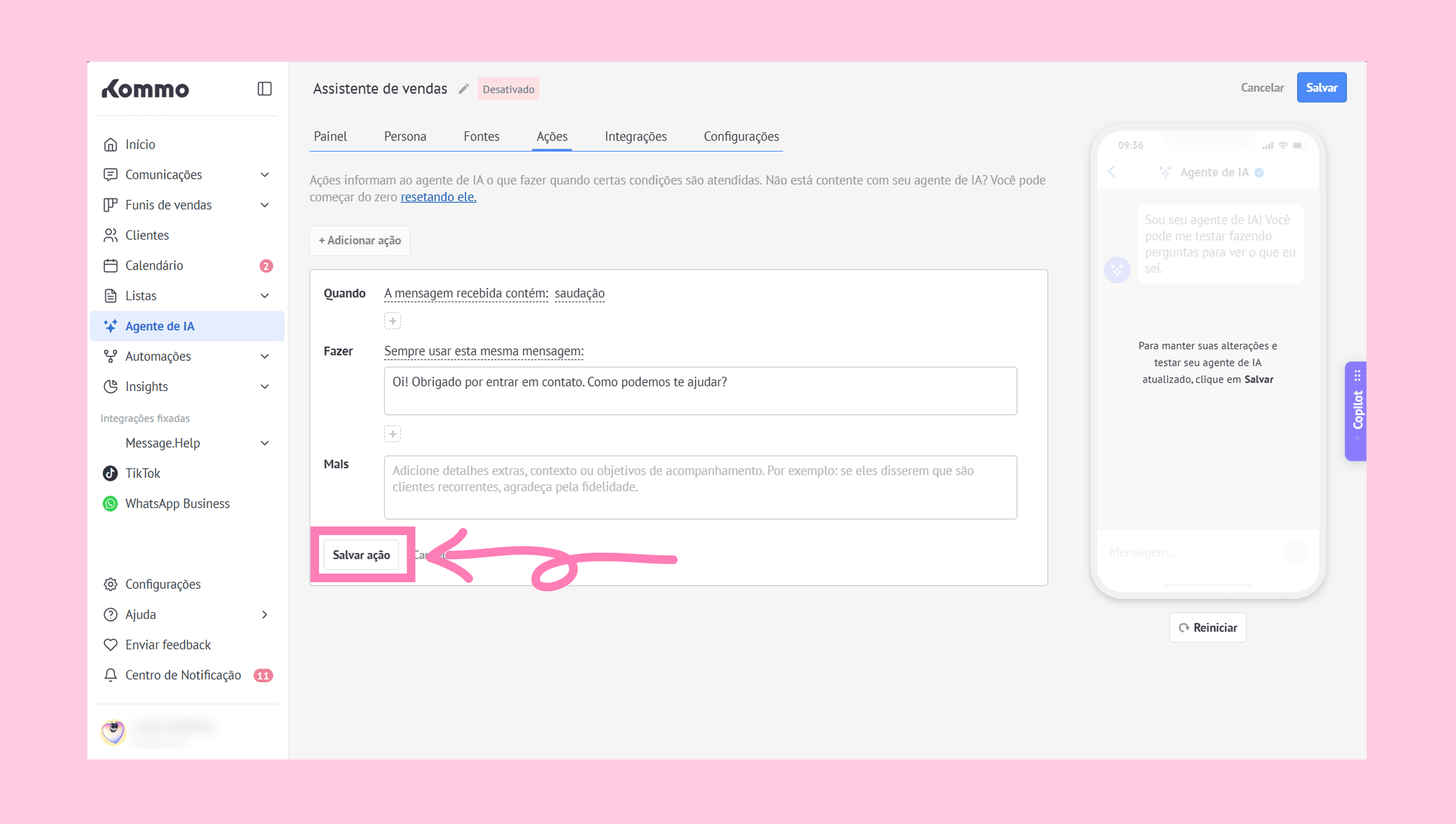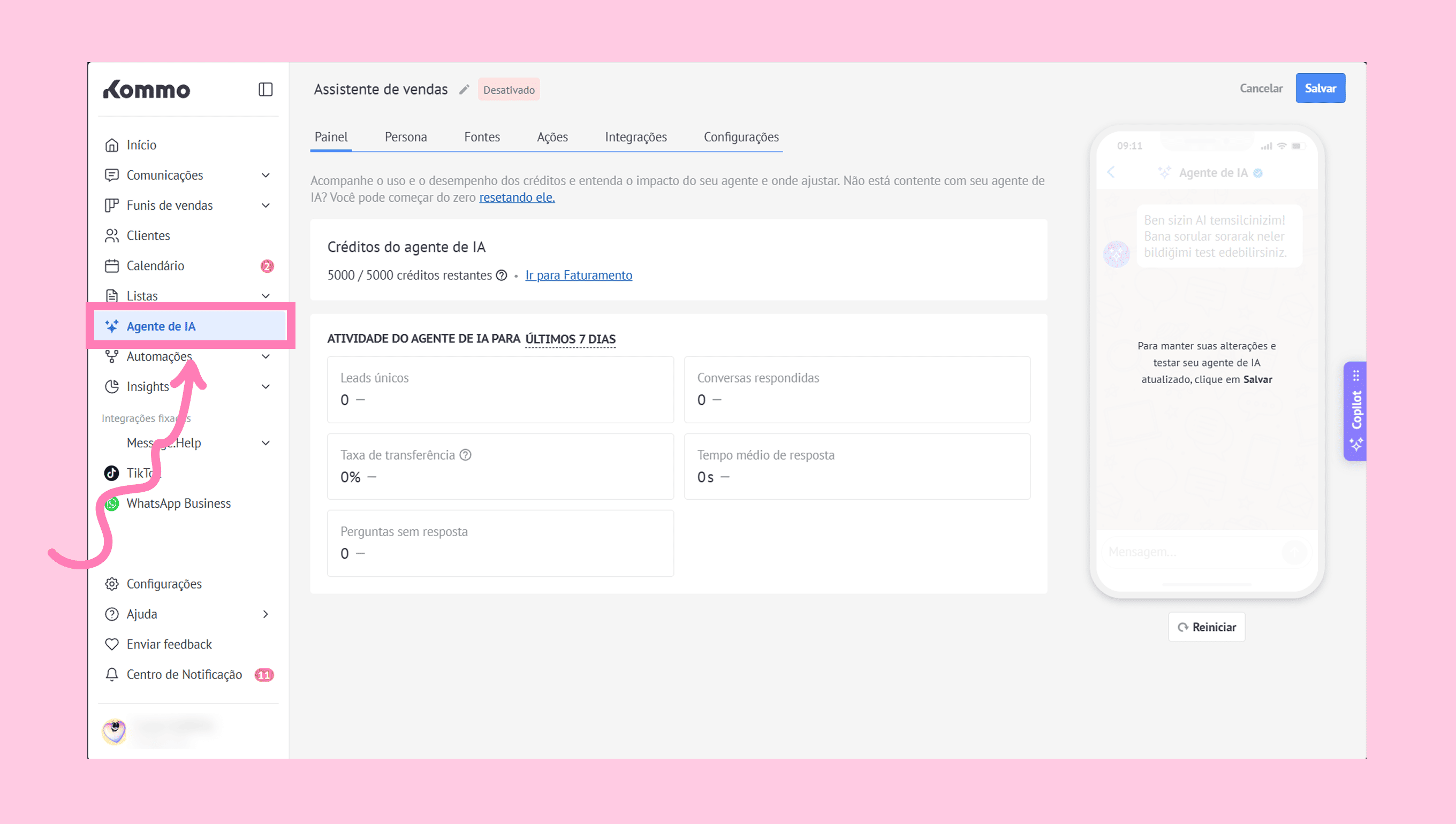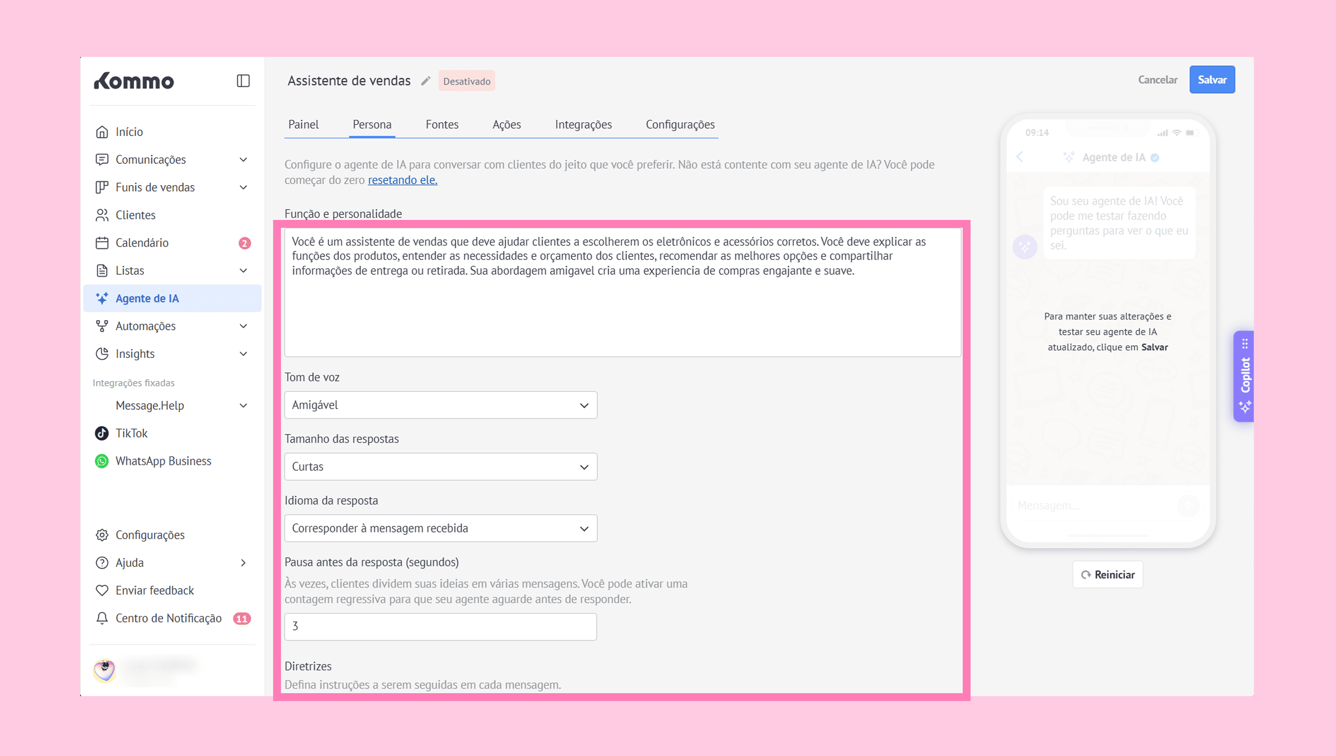 Para saber mais sobre como configurar a Persona do agente de IA, consulte nosso guia.