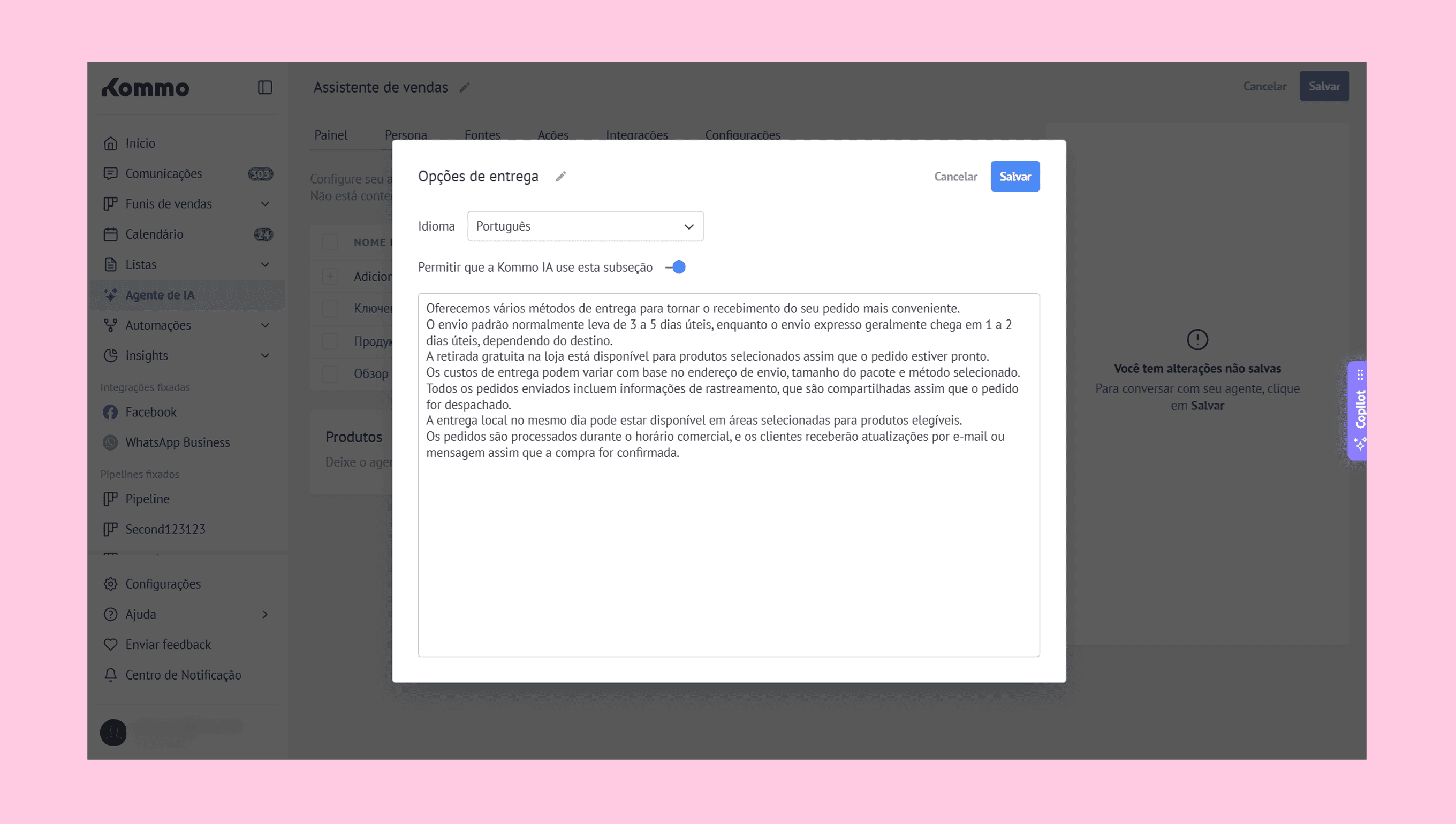 Importante: O agente de IA tentará interpretar essas instruções da melhor forma possível, mas pode não funcionar sempre como esperado.