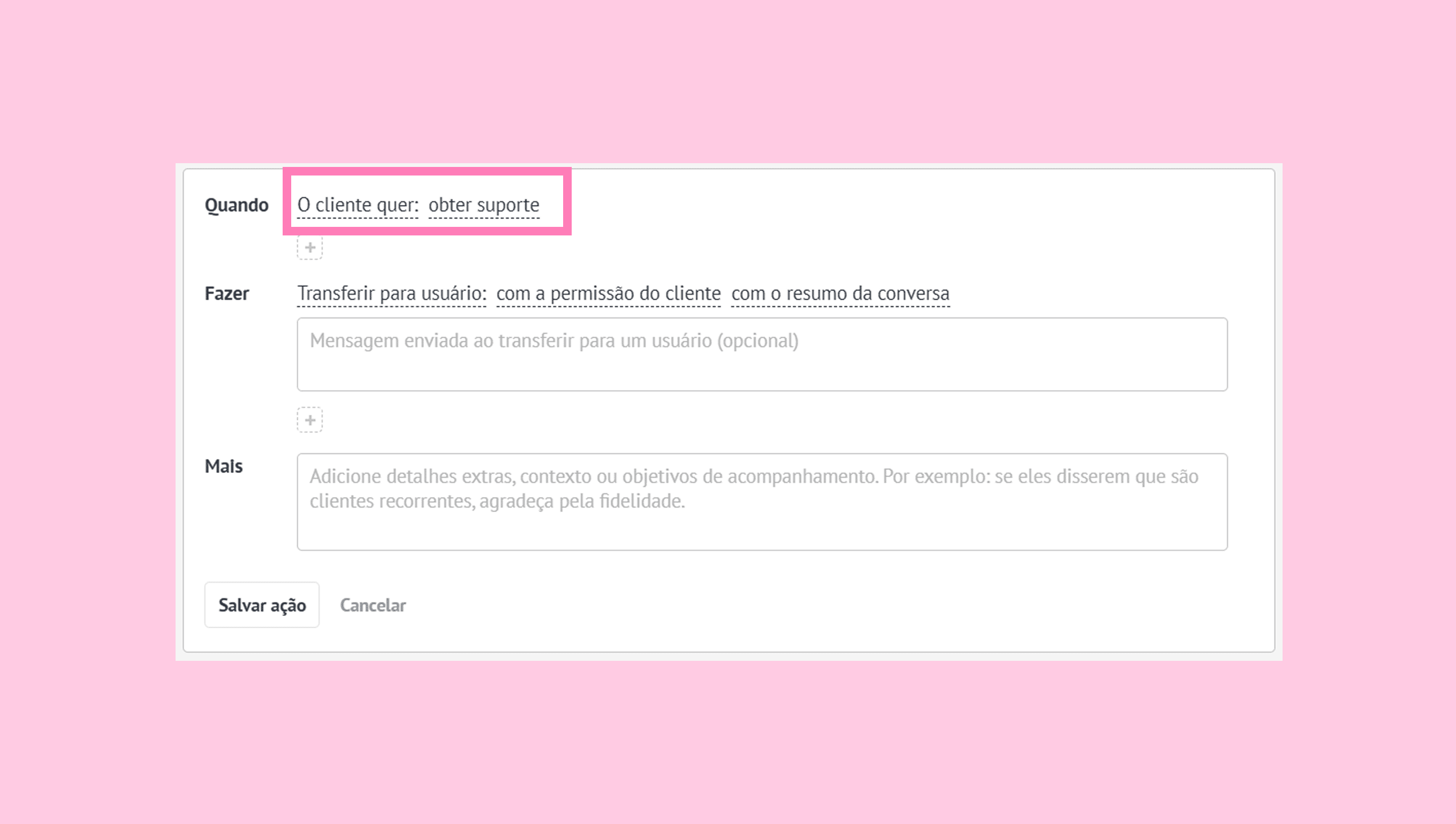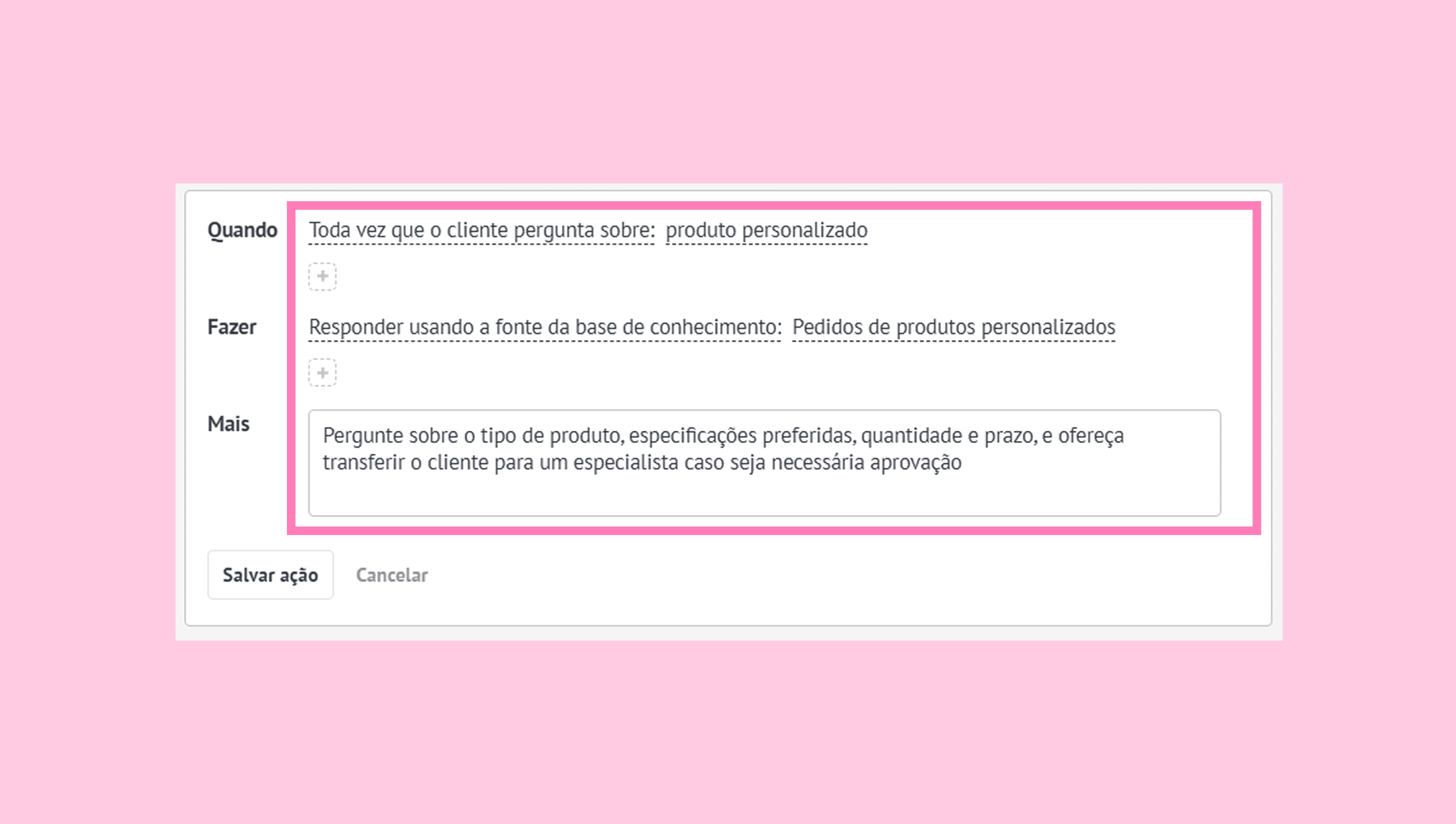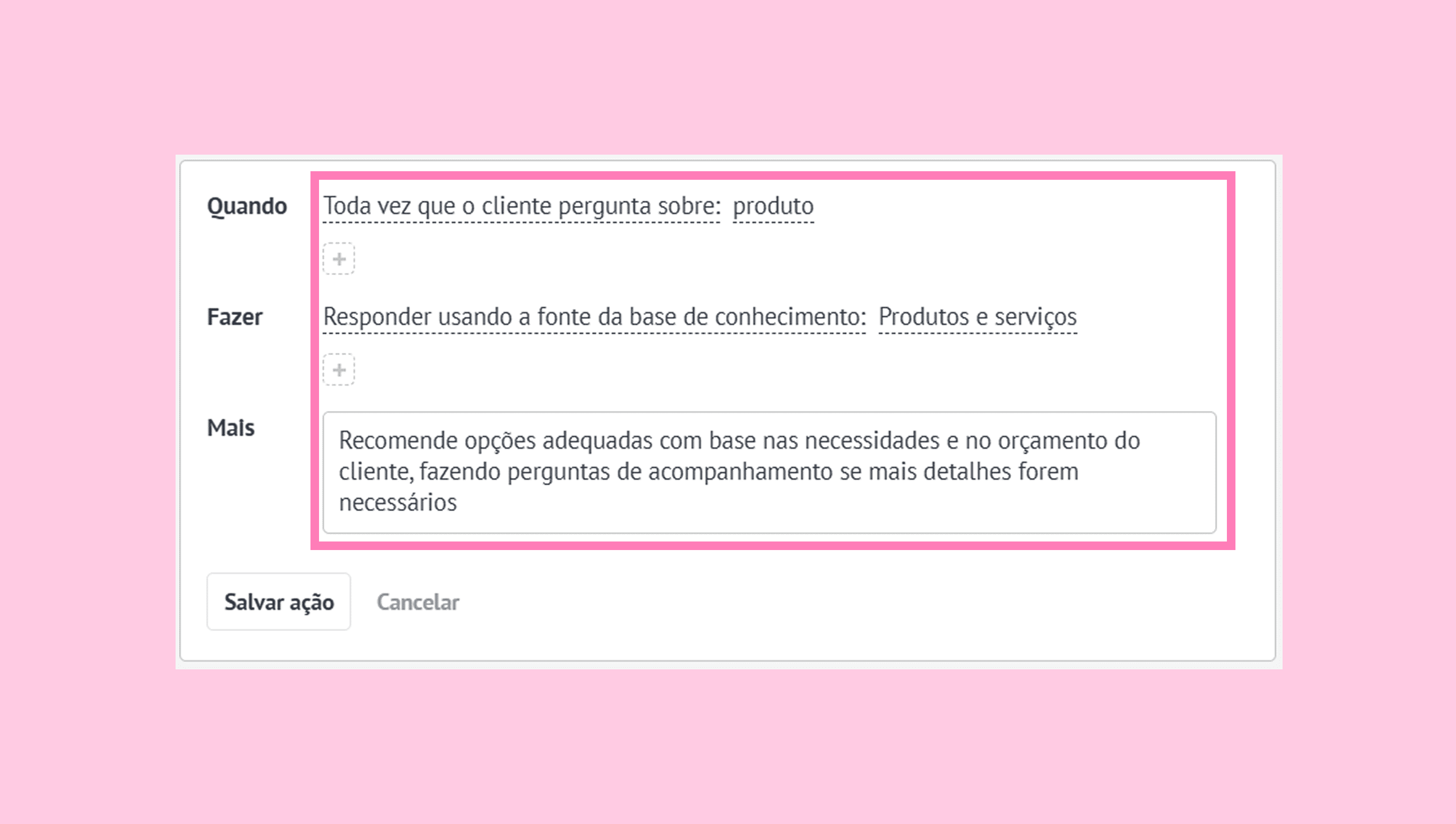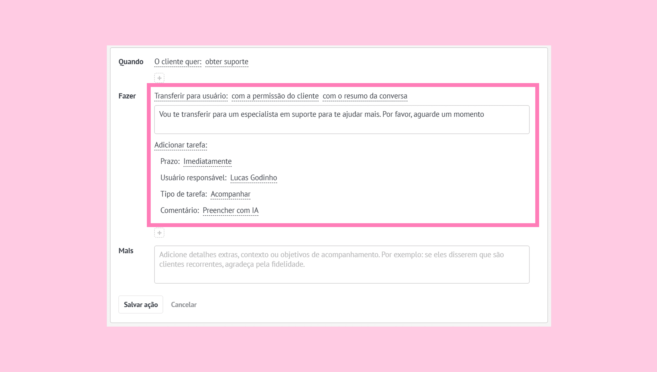 FAZER — ações que o agente de IA executará quando as condições forem atendidas.