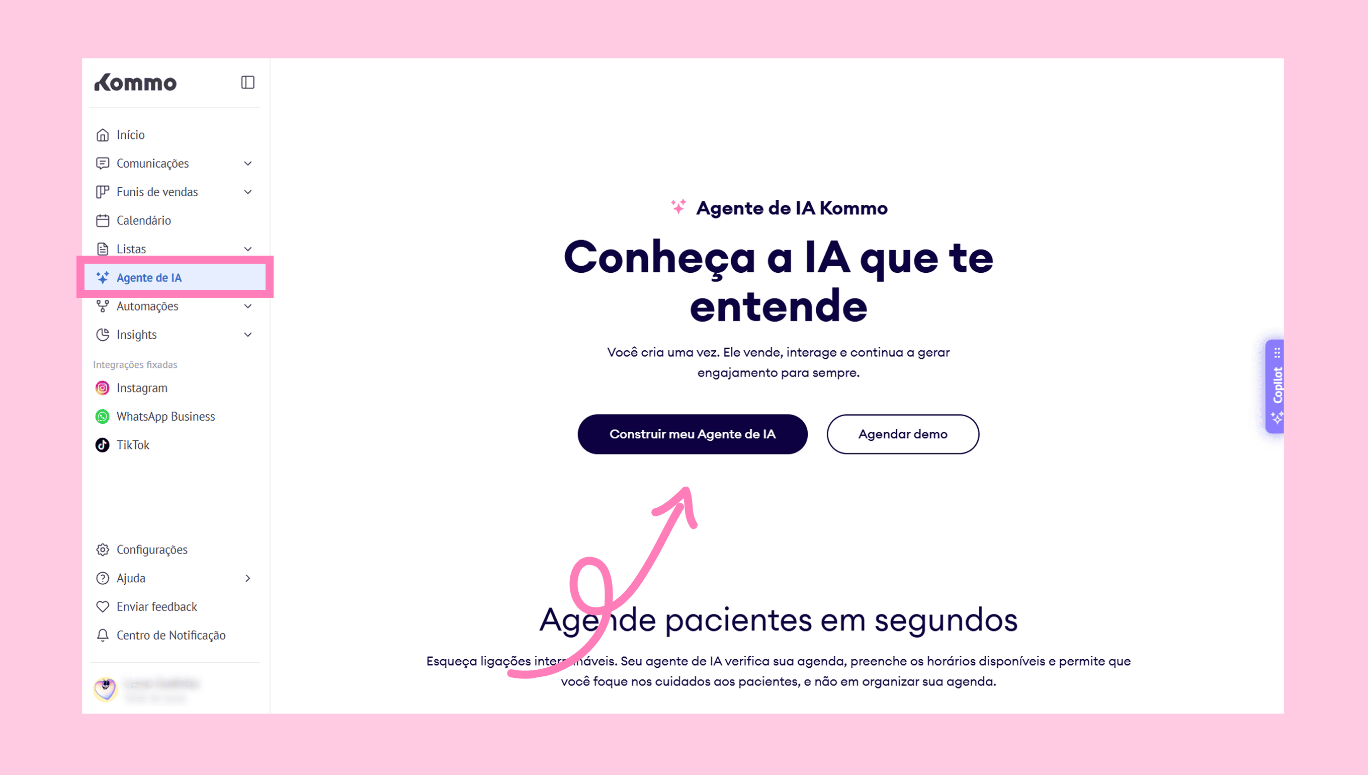 Observação: Se você nunca criou um agente de IA antes, clique em Criar meu agente de IA. Em seguida, siga as etapas do nosso guia para criar um automaticamente.