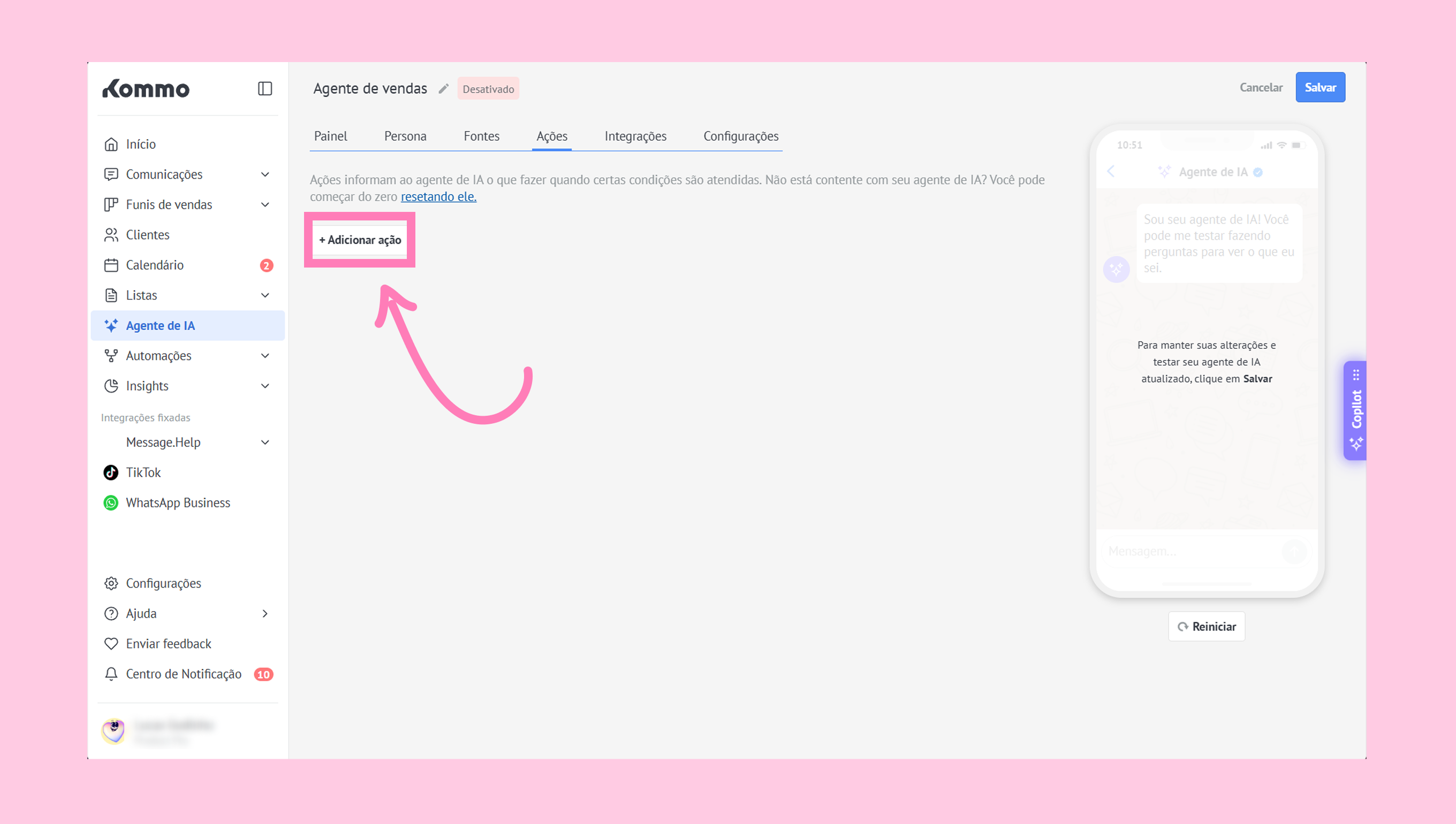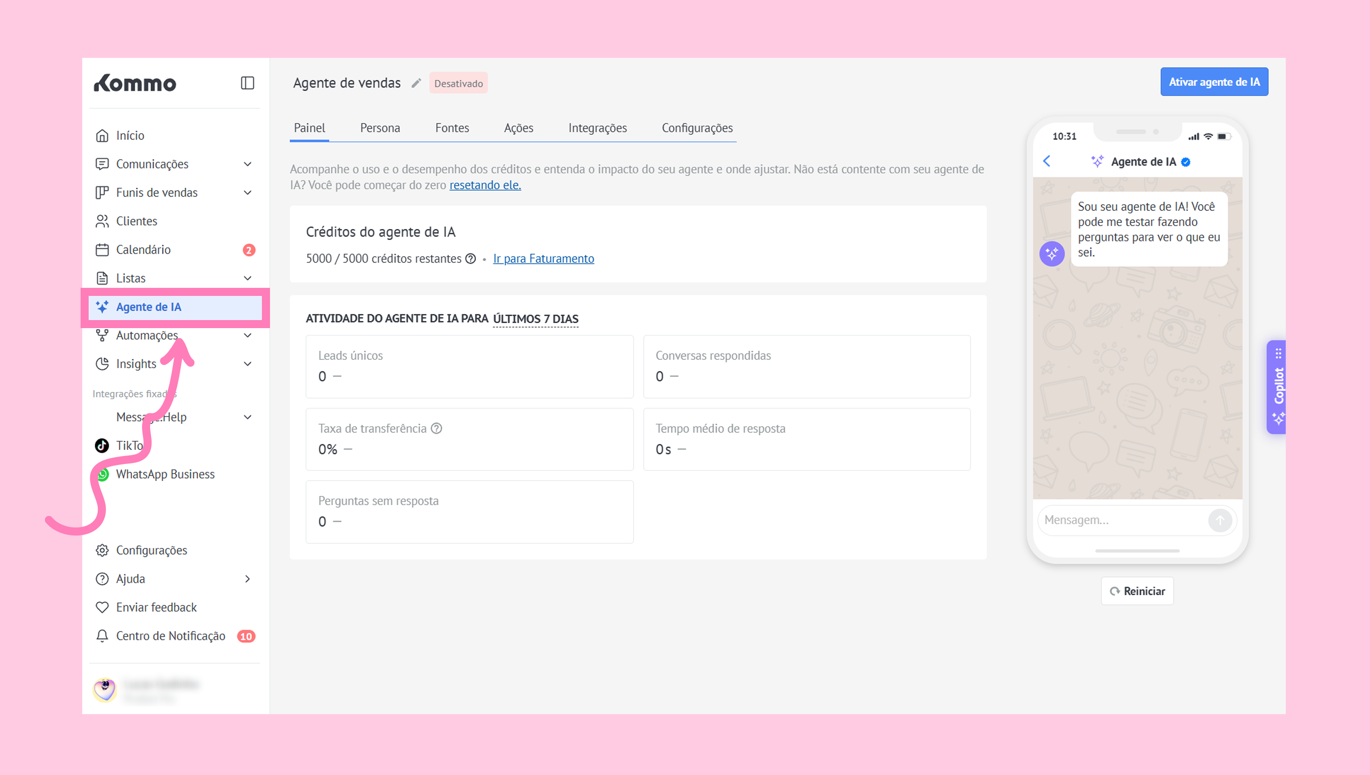 Vá até a seção do Agente de IA.