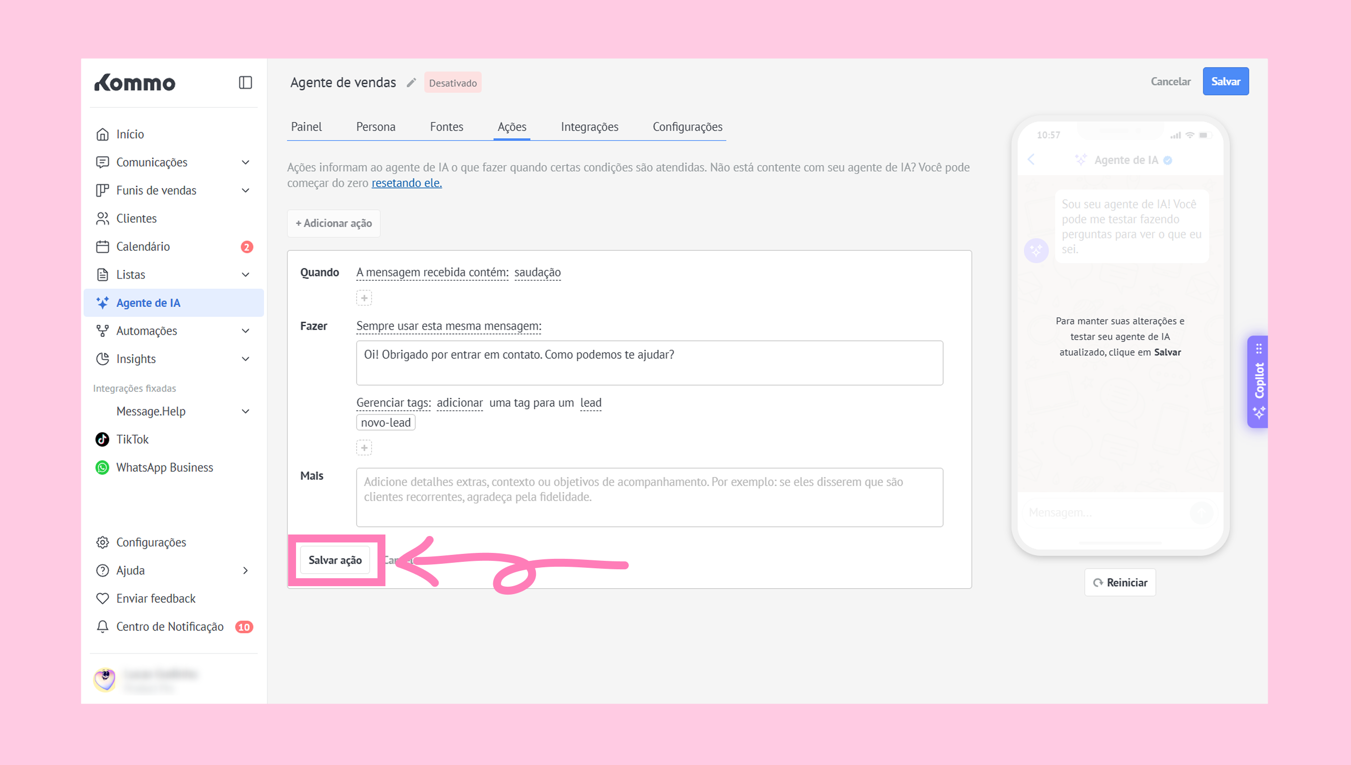 Para saber mais sobre como configurar a Persona do agente de IA, consulte nosso guia.
